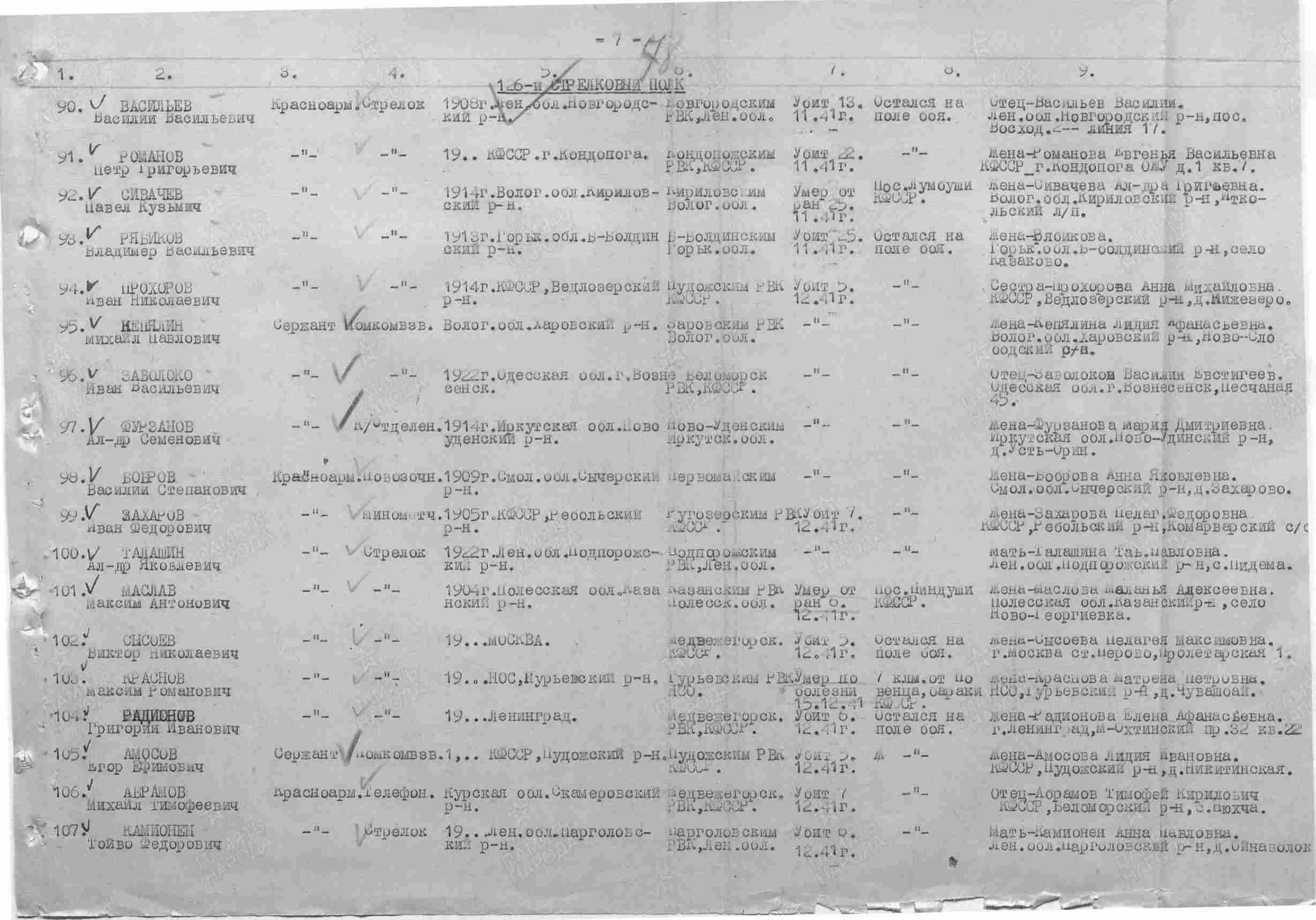 Номер донесения: 487 Тип донесения: Донесения о безвозвратных потерях Дата донесения: 18.01.1942 Название части: штаб 7 оА Перейти к списку