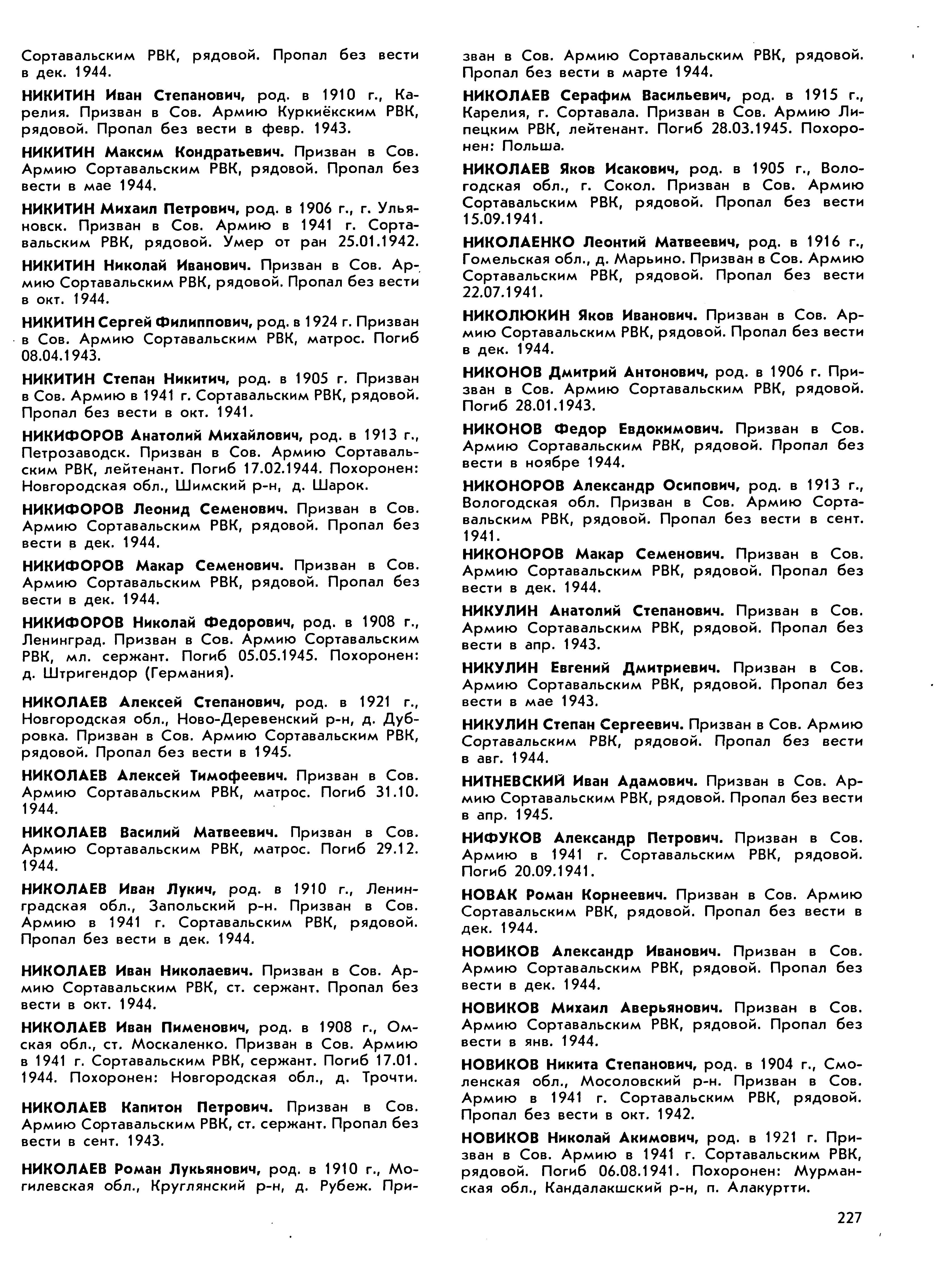 Книга памяти. Республика Карелия. Том 6. Страница 227 Перейти к списку