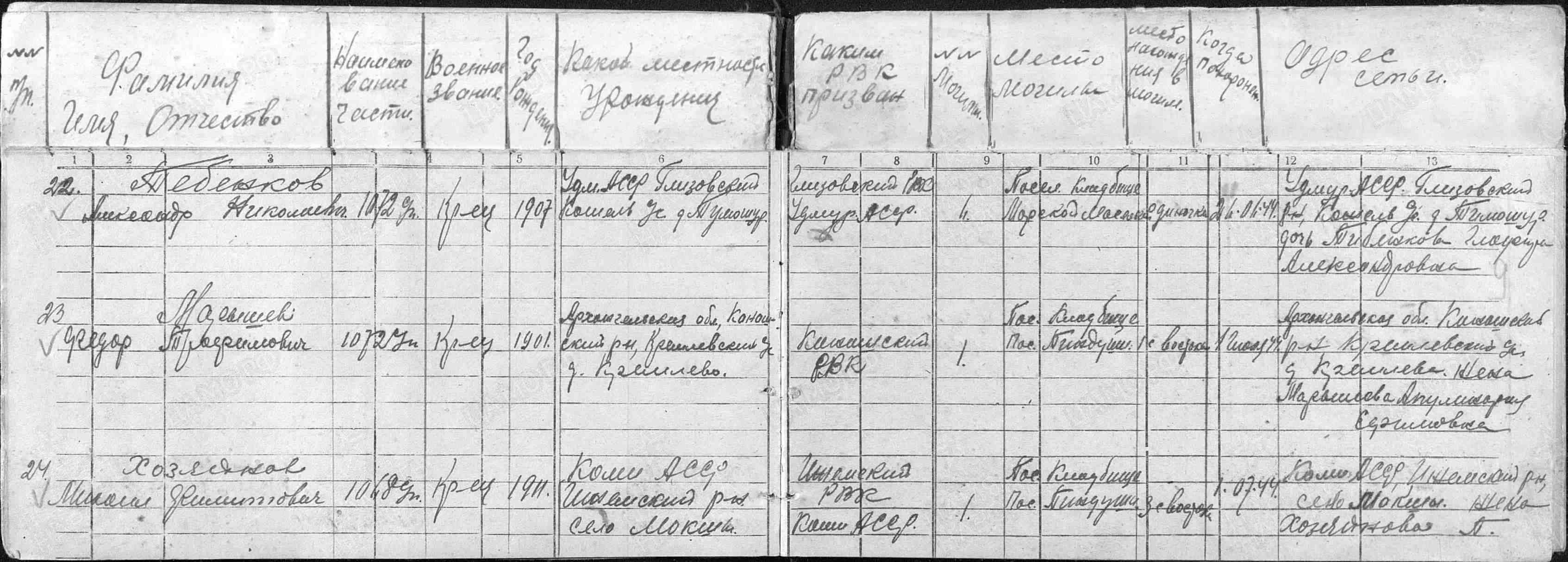 Место проживания родственников на момент призыва