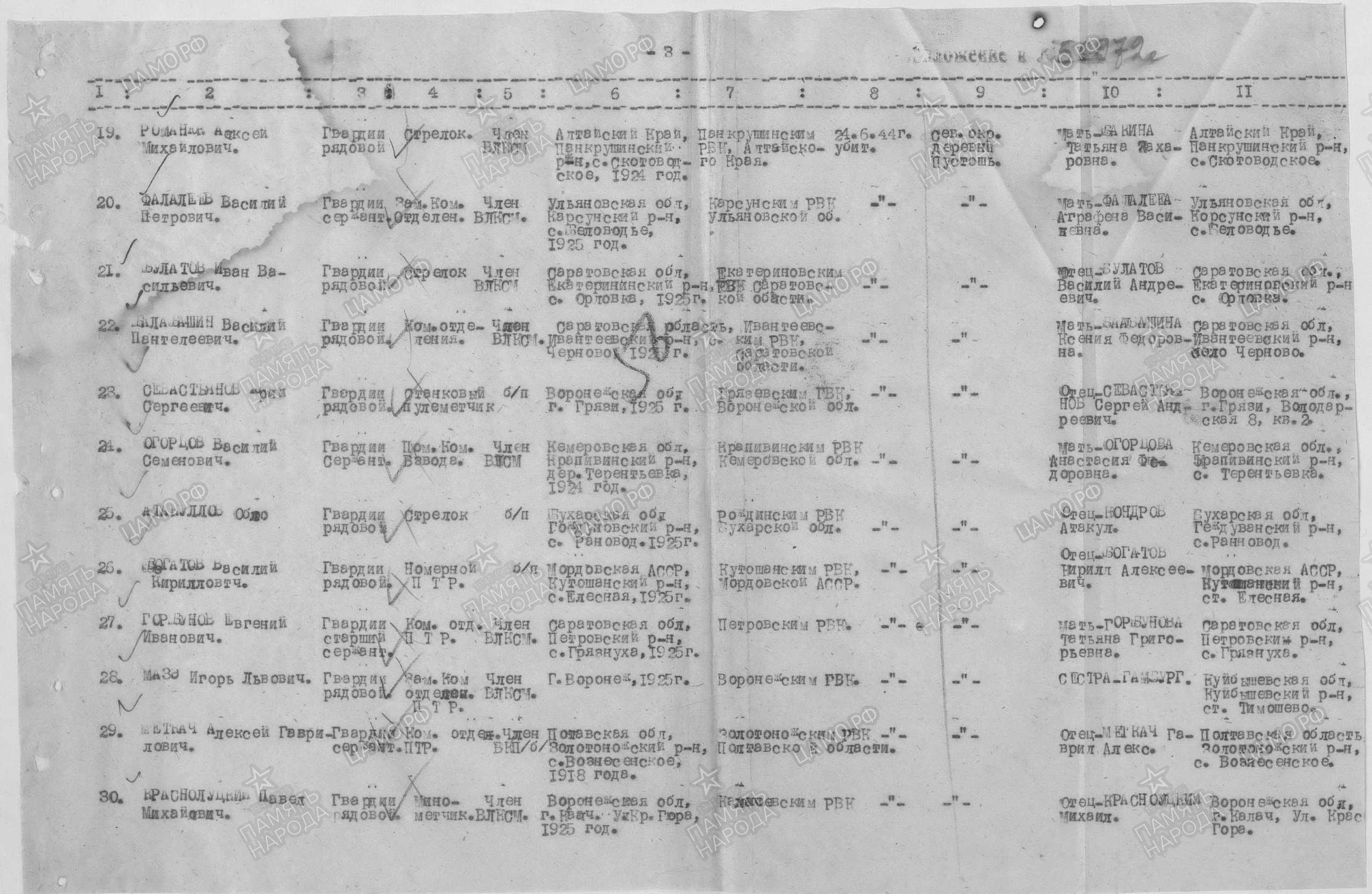 Списки безвозвратных потерь 100 Гвардейской стрелковой дивизии за период с 20 по 30 июня 1944 Перейти к списку