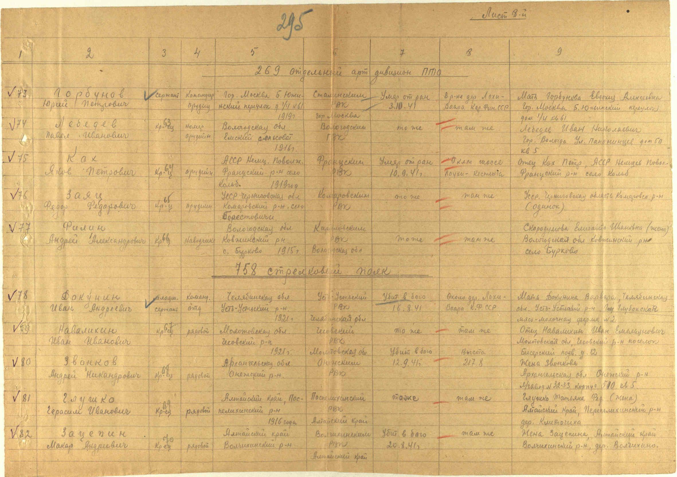 списки умерших. Страница 8 Перейти к списку