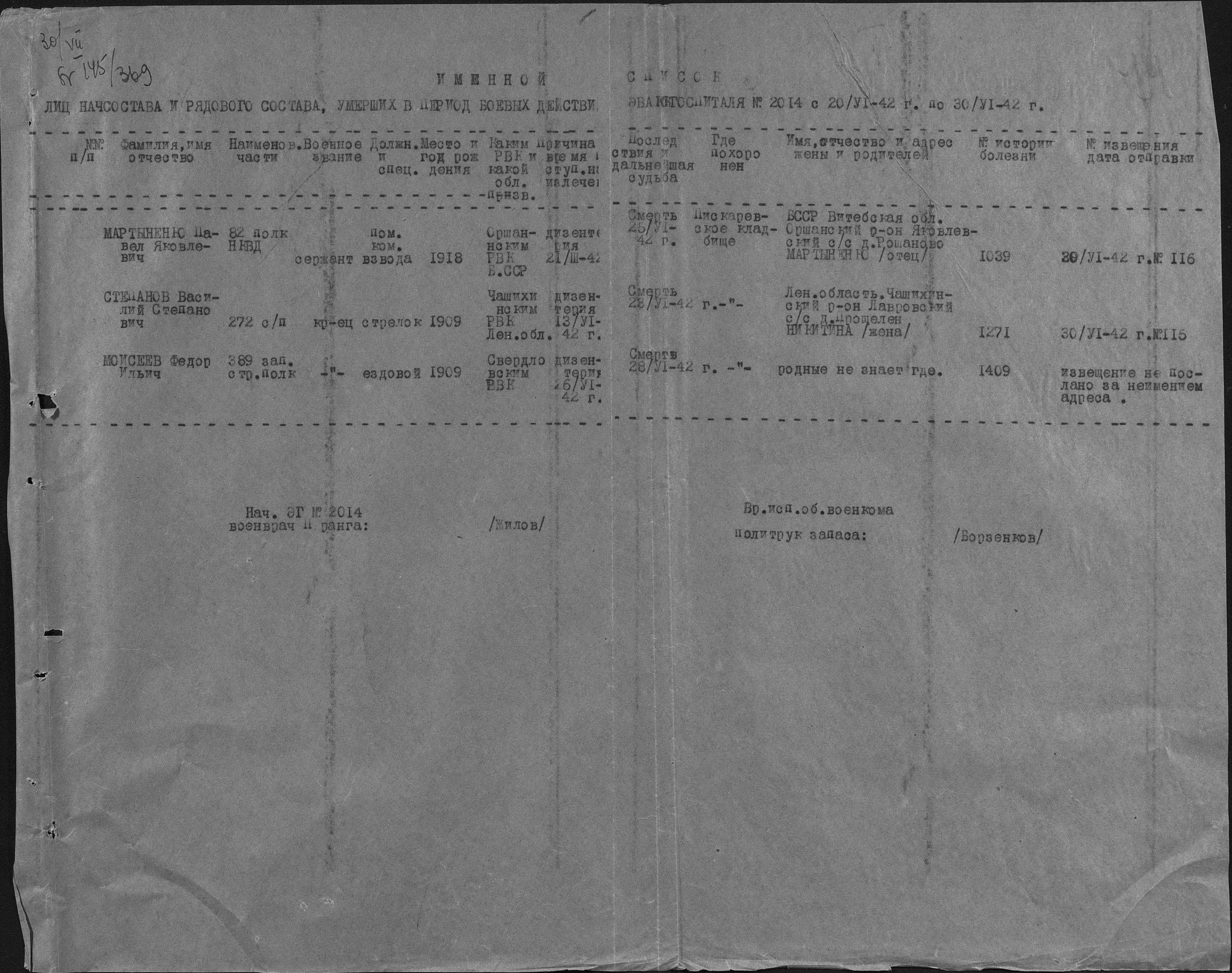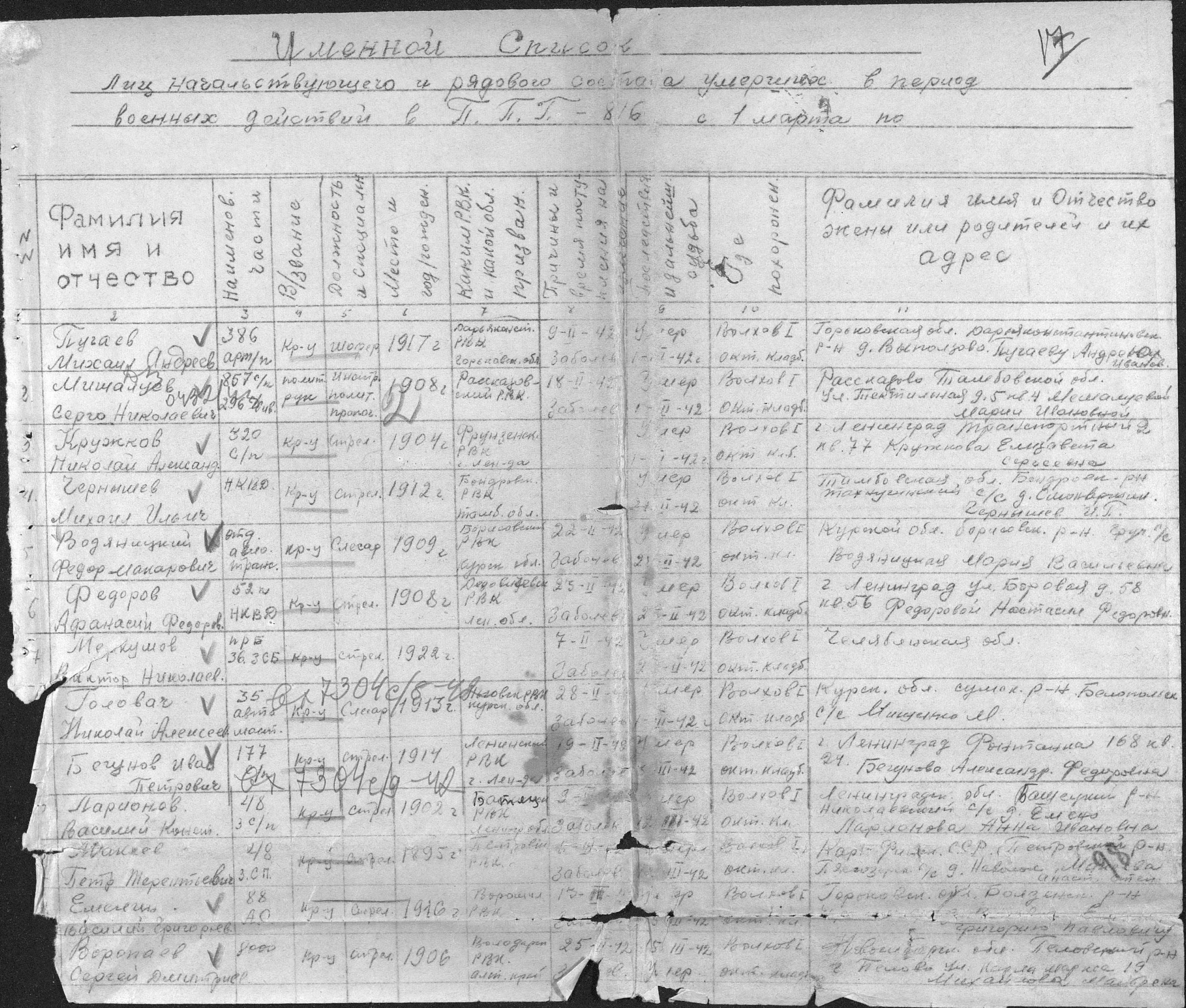 списки умерших. 15.02.1942-01.01.1945. Источник: 2235 ППГ. Страница 9 Перейти к списку