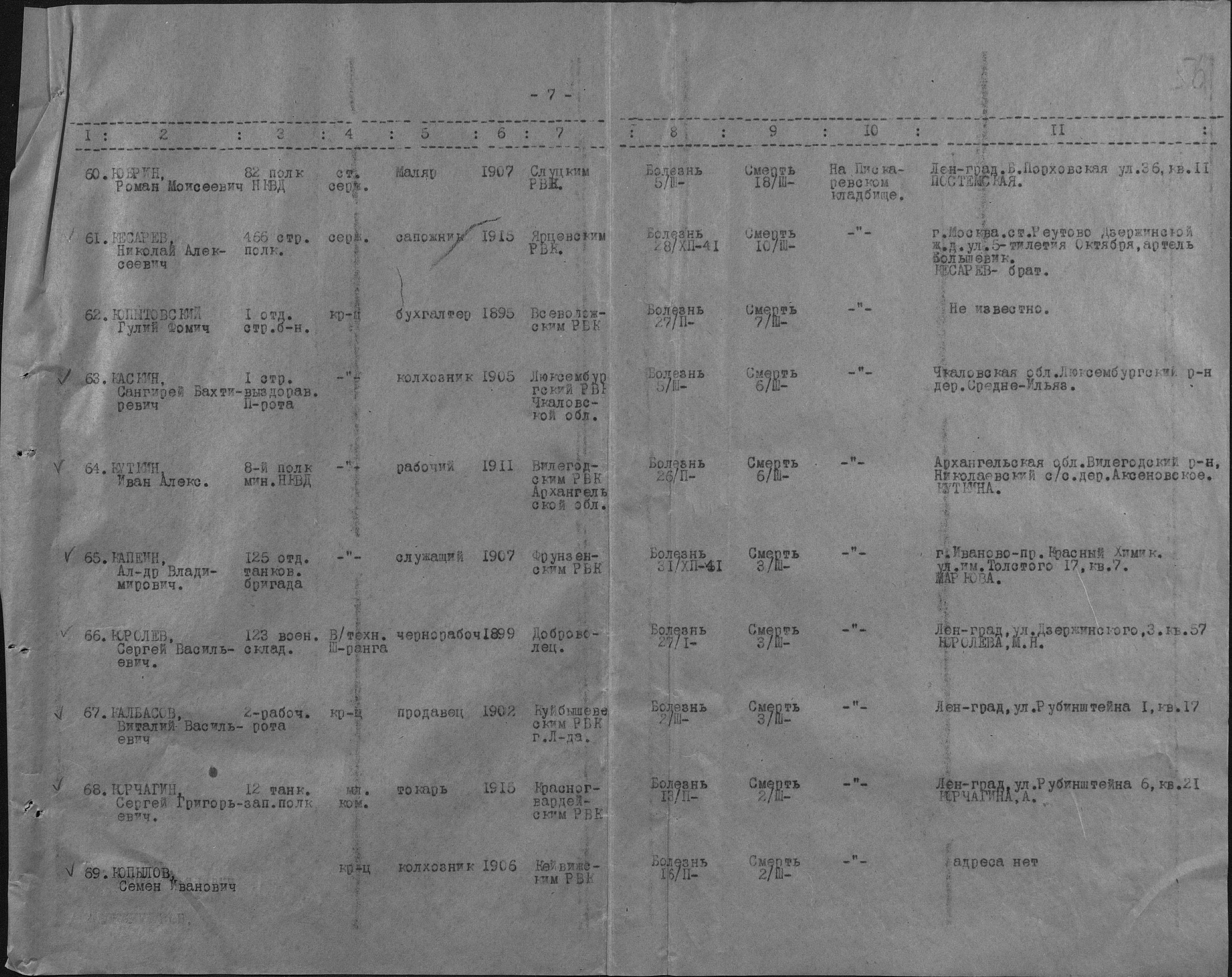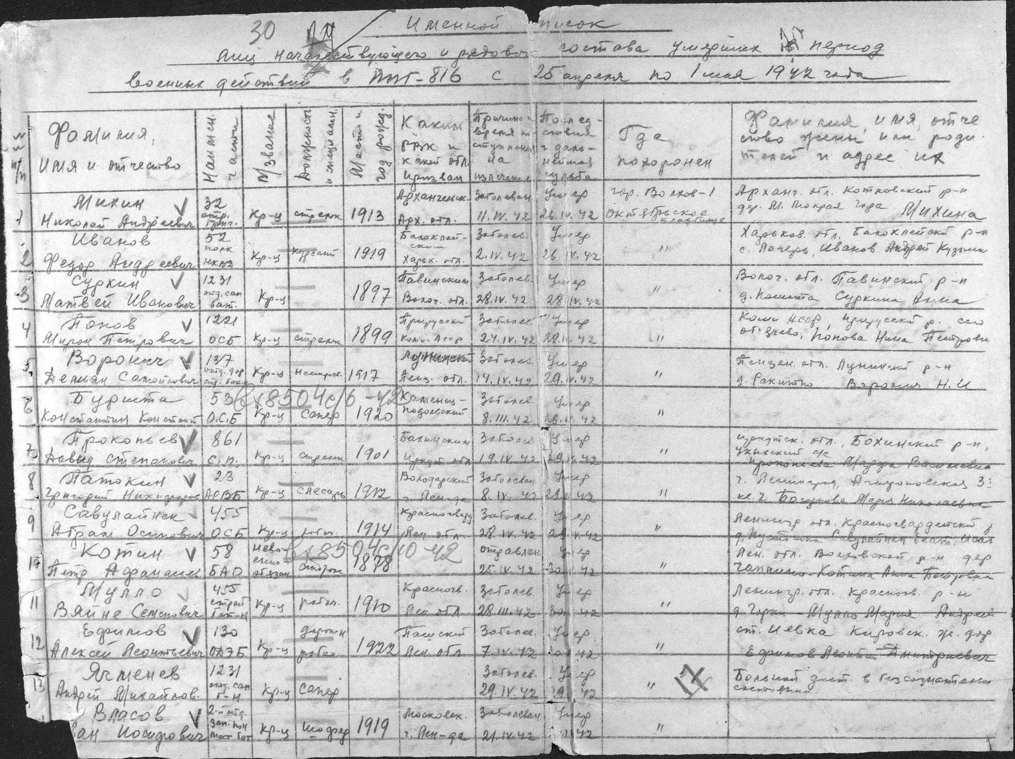 списки умерших. Страница 81 Перейти к списку