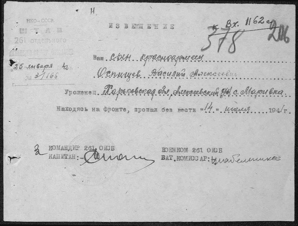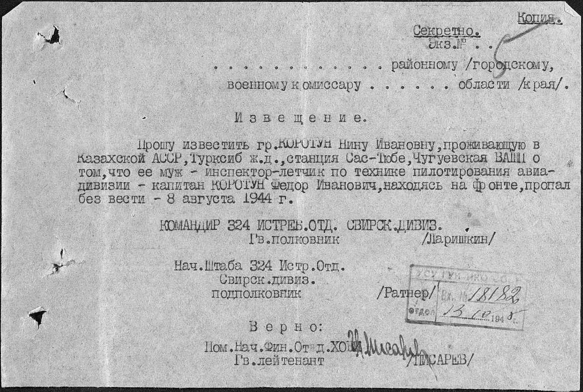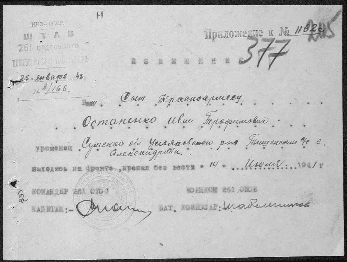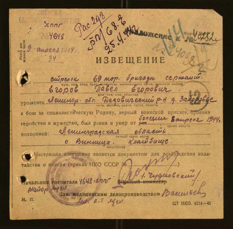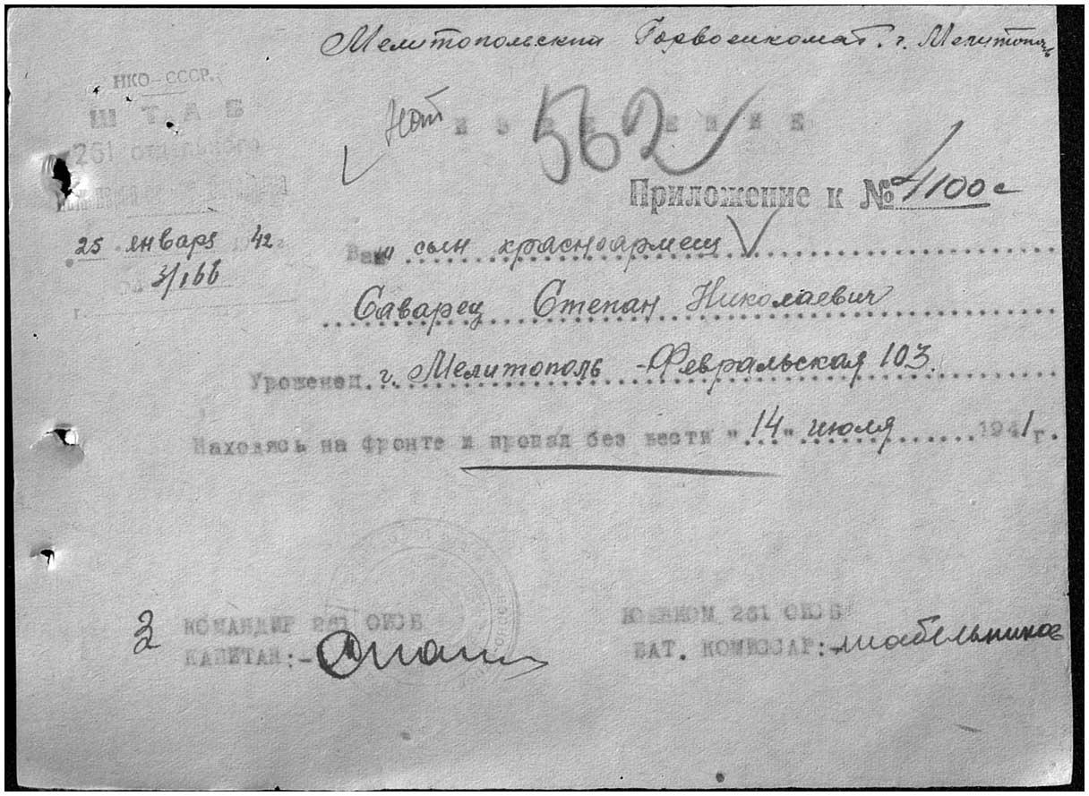 Извещения боевых частей. Номер 40252. 11.07.1944. Источник: Приморский РВК. Страница 25 Перейти к списку