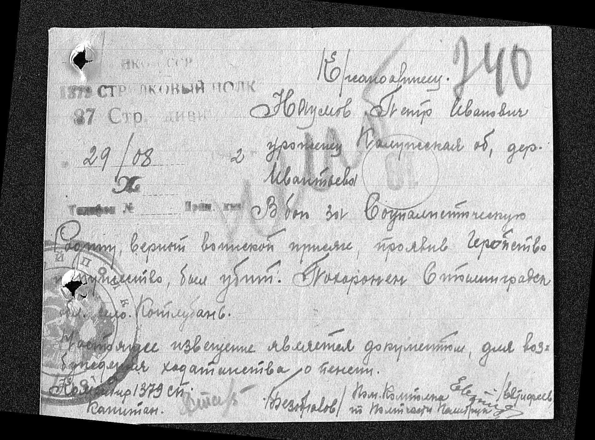 Извещения боевых частей. Номер 84028. 10.10.1944. Источник: Осипенковский ГВК. Страница 5 Перейти к списку