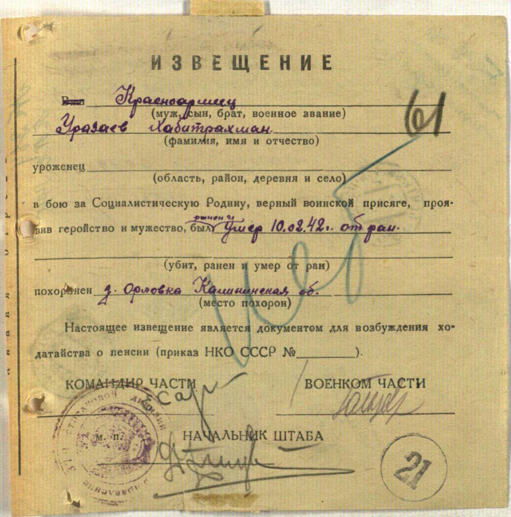 Извещения боевых частей. Номер 87122. 12.10.1944. Источник: Молотовский РВК Омской обл.. Страница 5 Перейти к списку