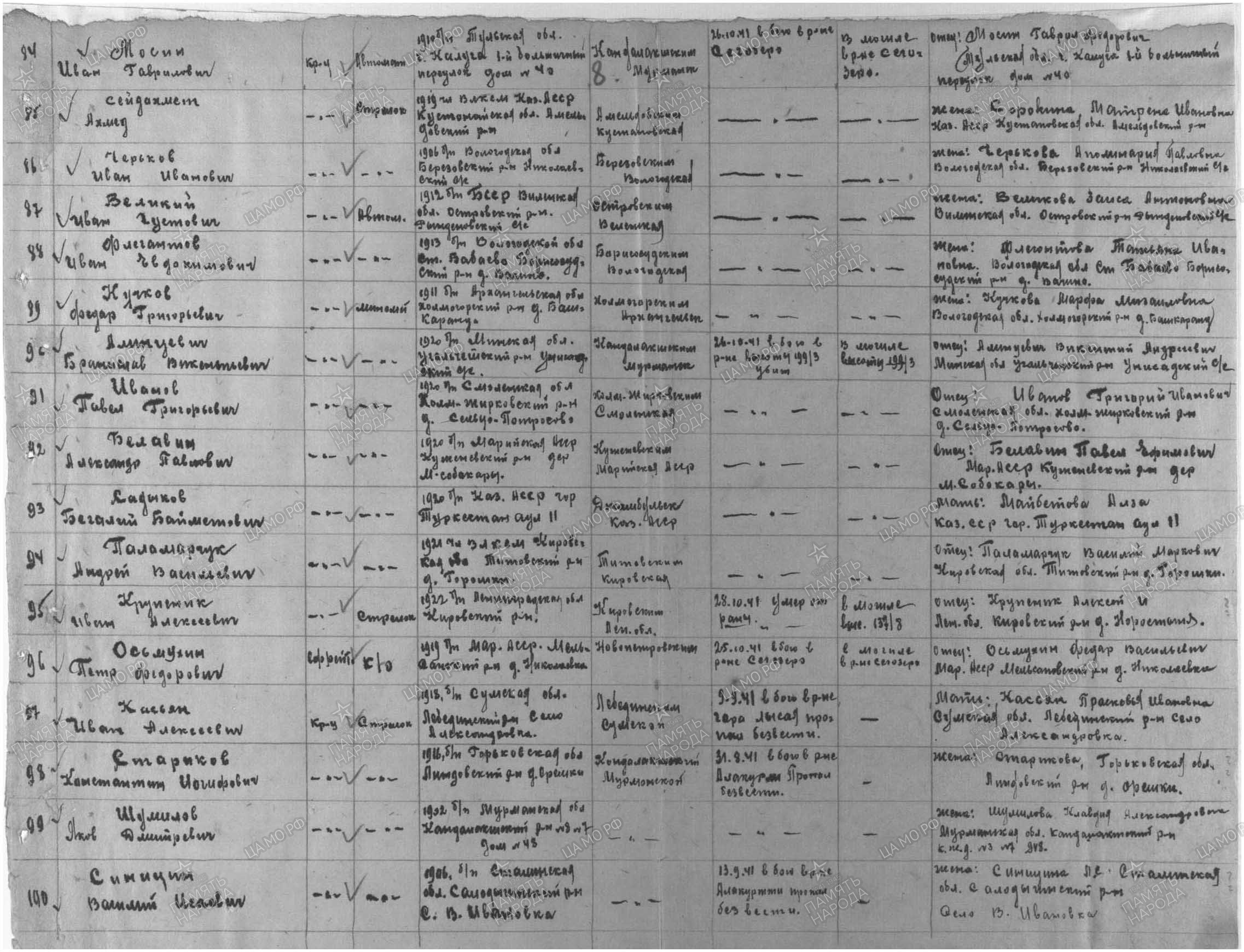 именные списки потерь. 22.06.1941-31.12.1941. Источник: 88 ХППГ, КПГ 11 ск, ППГ б. 11 ск, 1 ППГ, 1 ХППГ. Страница 22 Перейти к списку