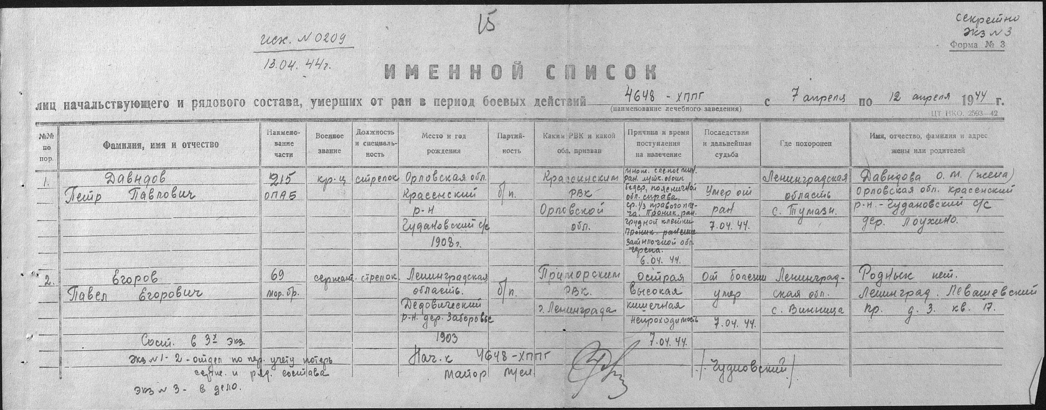 именные списки потерь. 01.01.1944-31.12.1944. Источник: 4648 ХППГ. Страница 27 Перейти к списку