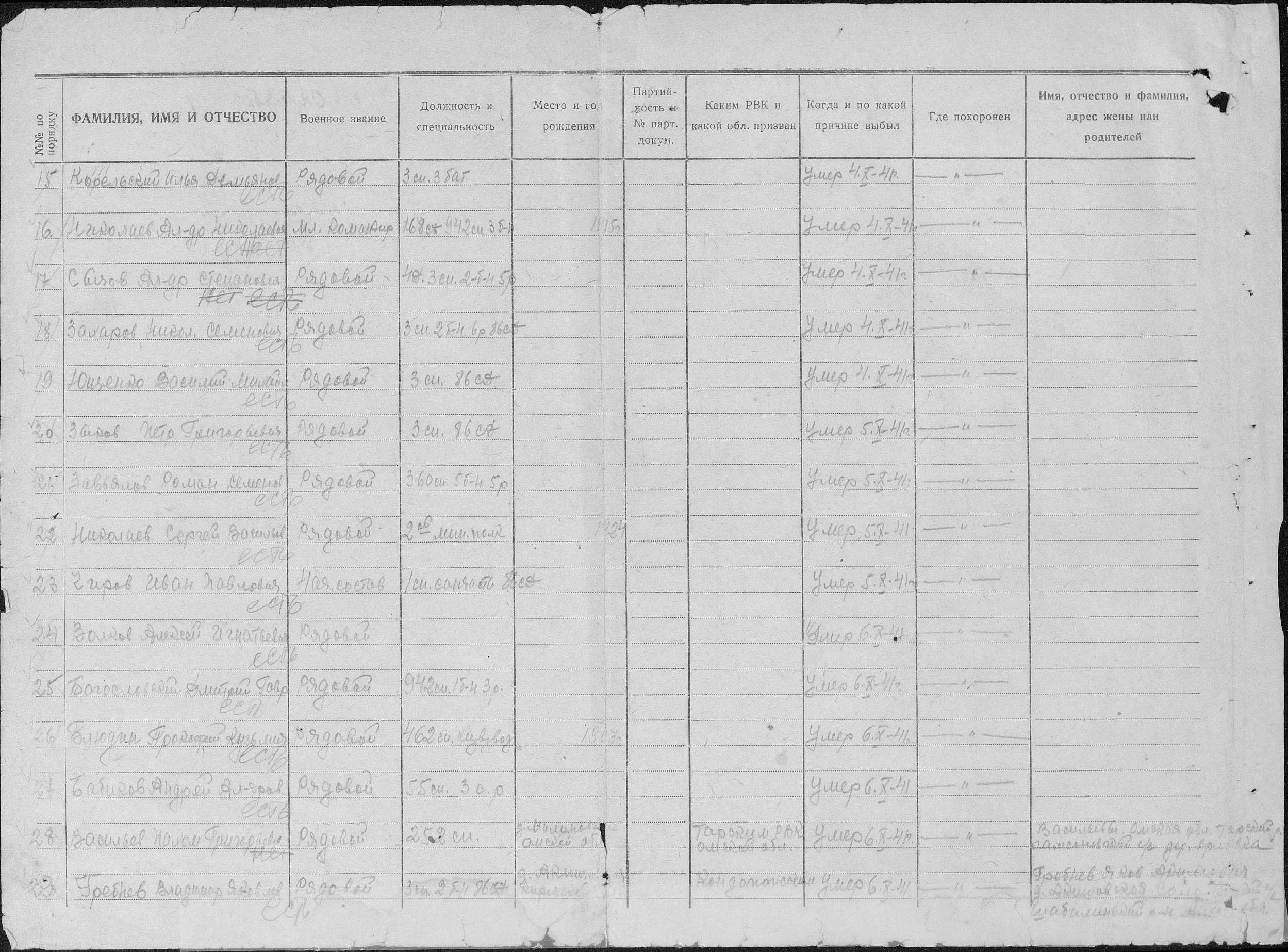 именные списки умерших. 25.03.1943 - 31.12.1944. Источник: 599 ХППГ. Страница 16 Перейти к списку