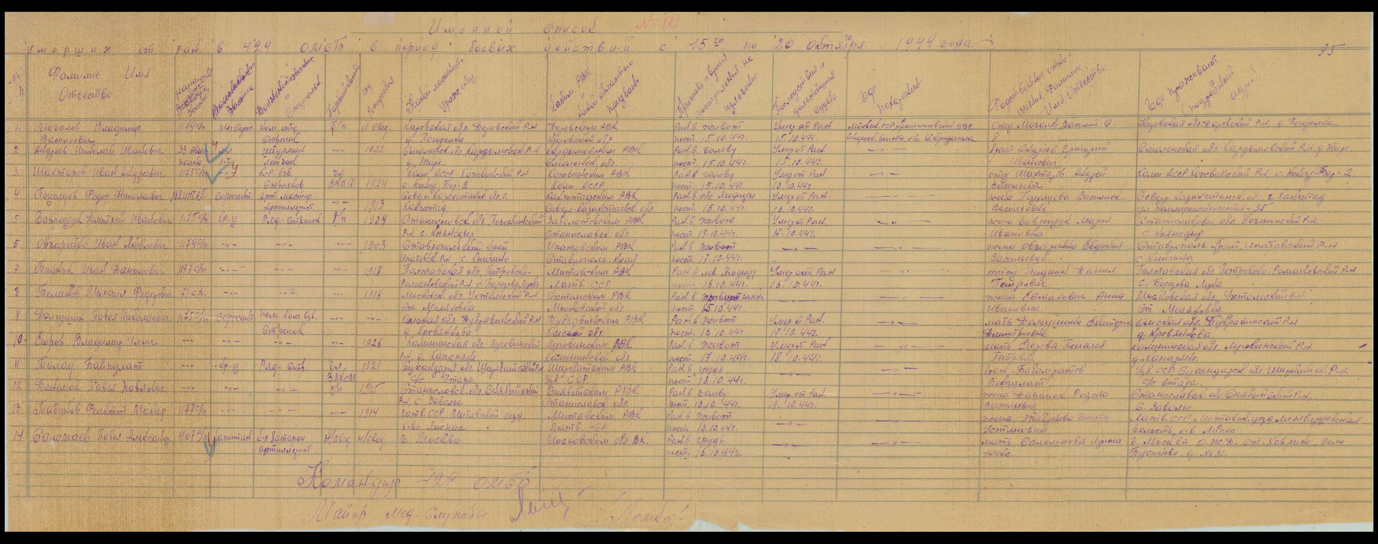 именные списки умерших. 13.06.1944-22.09.1945. Источник: 317 ОМСБ 272 сд. Страница 29 Перейти к списку