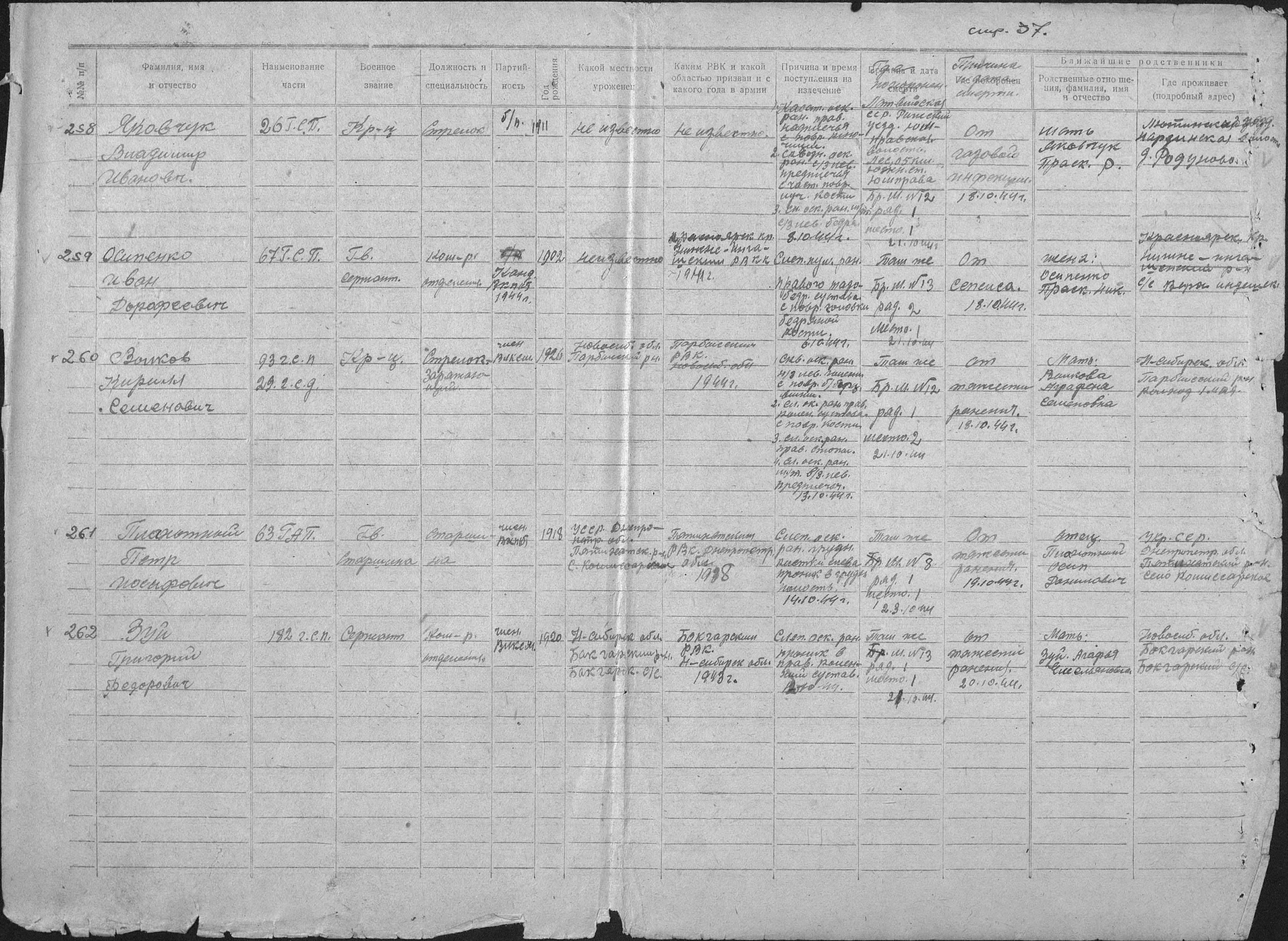именные списки умерших. 01.09.1941-13.10.1944. Источник: 363 ОМСБ 1 гв. сд. Страница 252 Перейти к списку