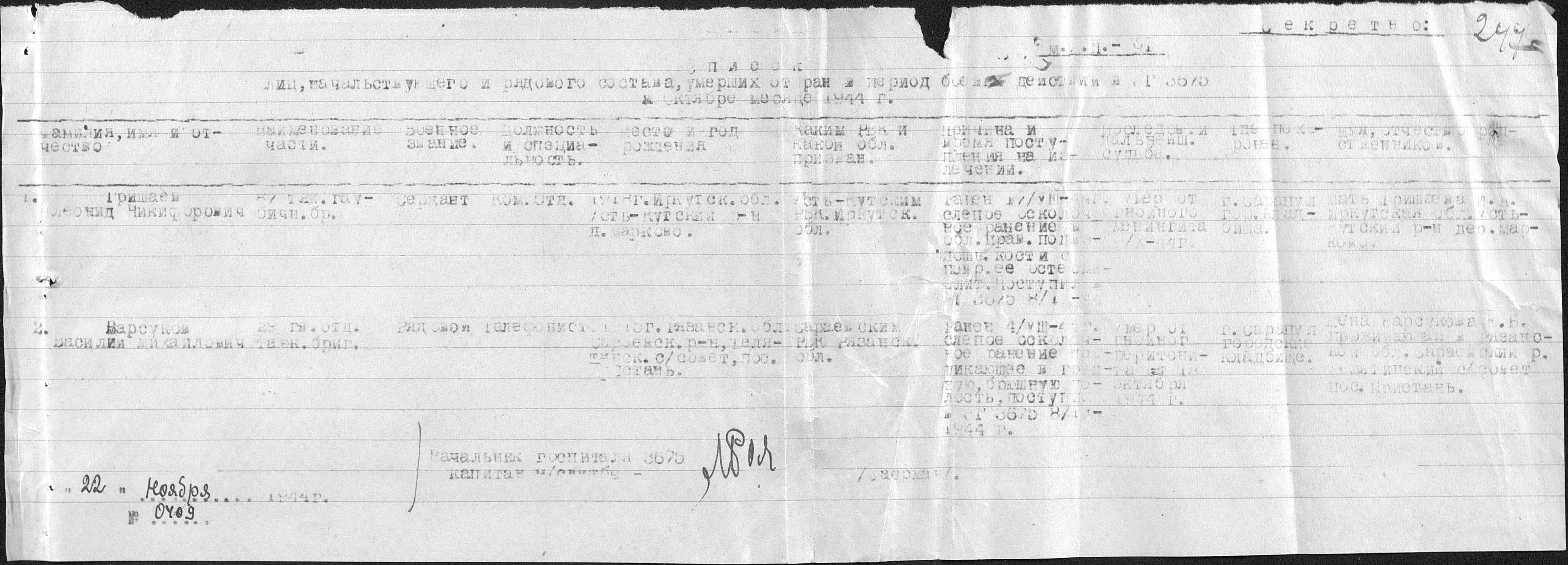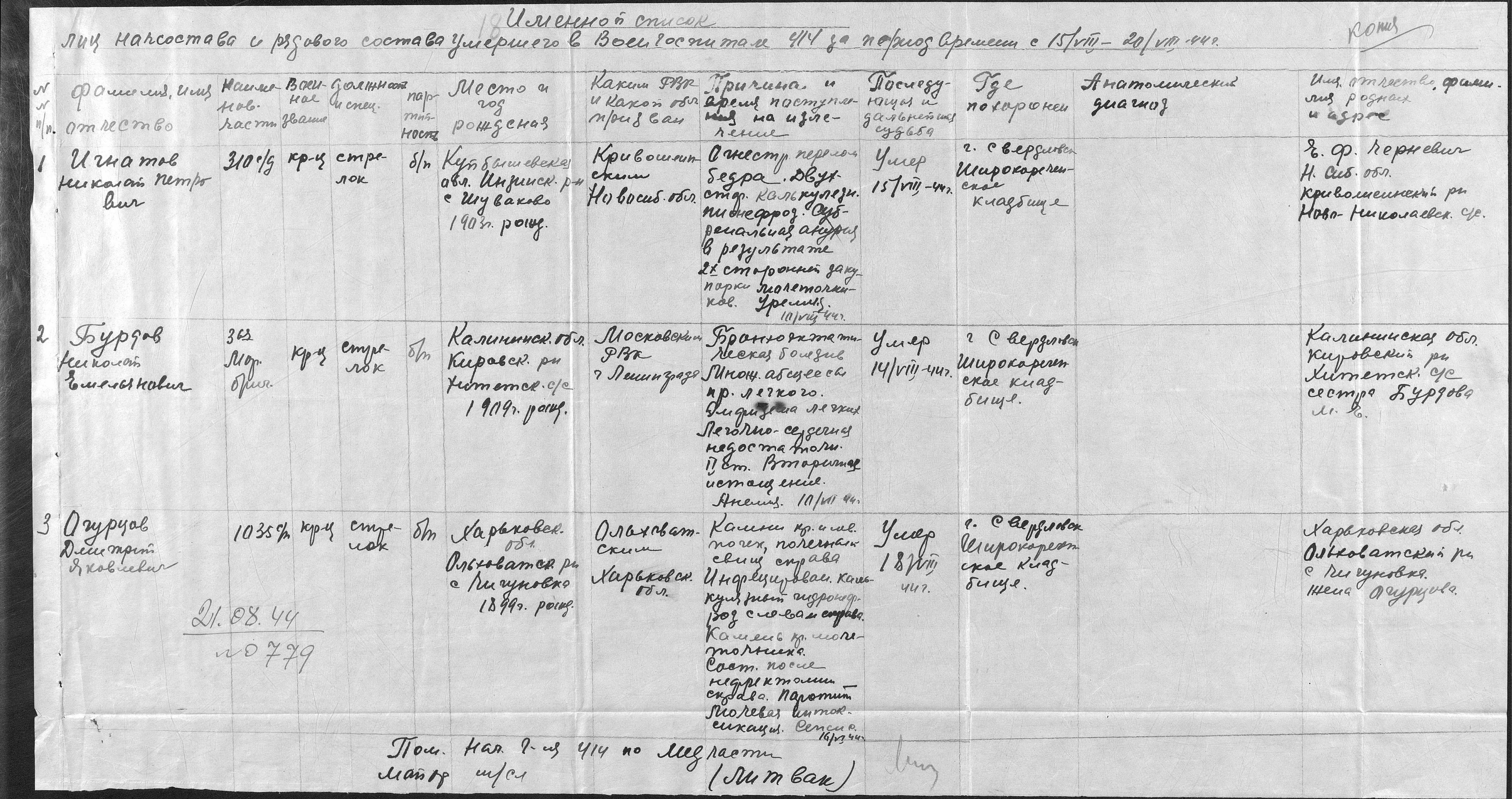 именные списки умерших. 01.01.1944-31.12.1944. Источник: 414 ВГ. Страница 22 Перейти к списку