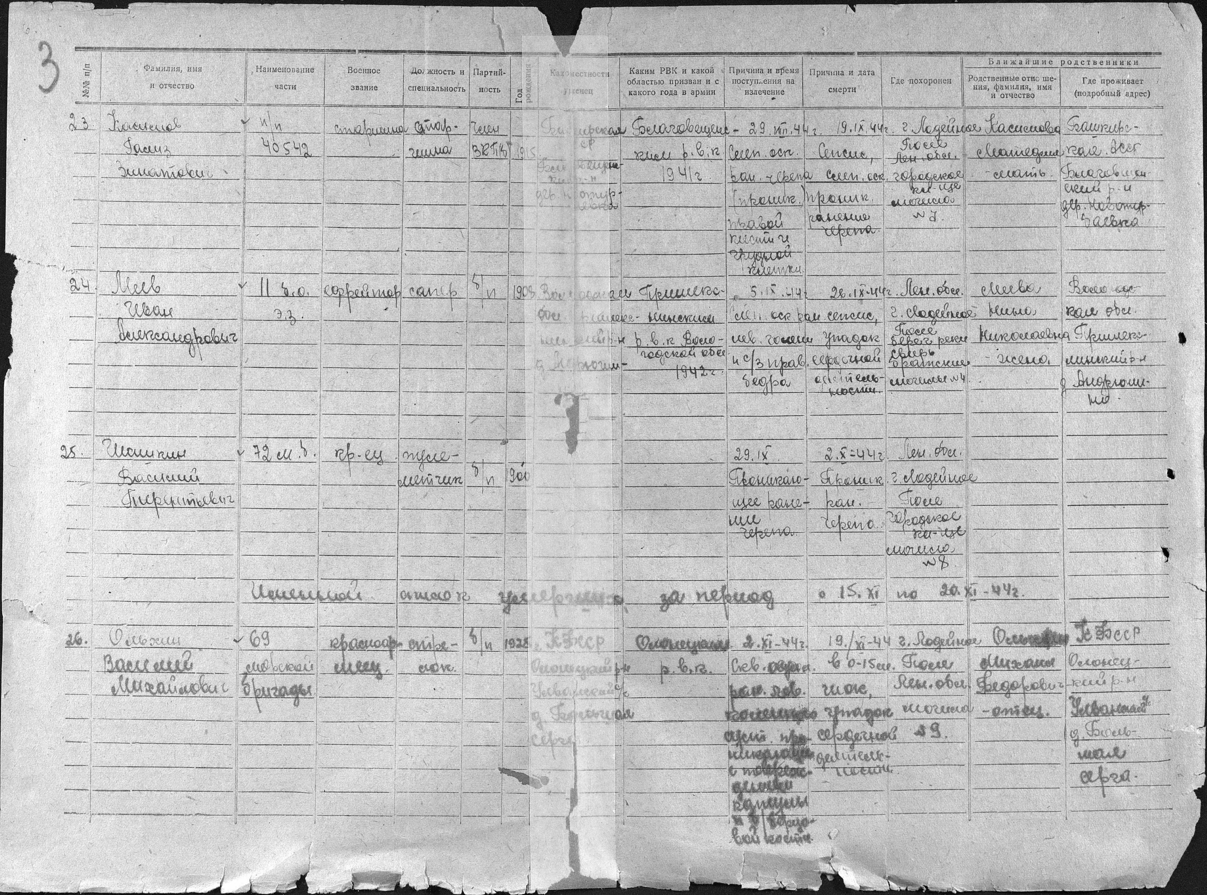 именные списки умерших. 01.01.1944-31.12.1944. Источник: 103 ХППГ. Страница 39 Перейти к списку