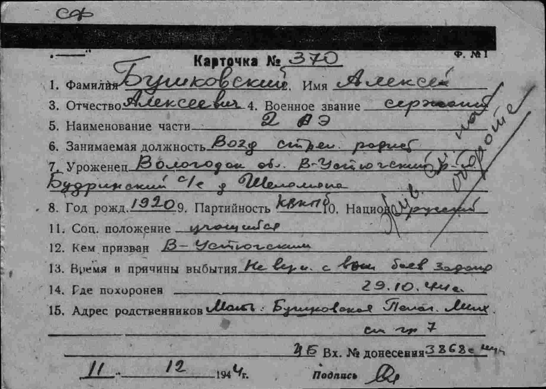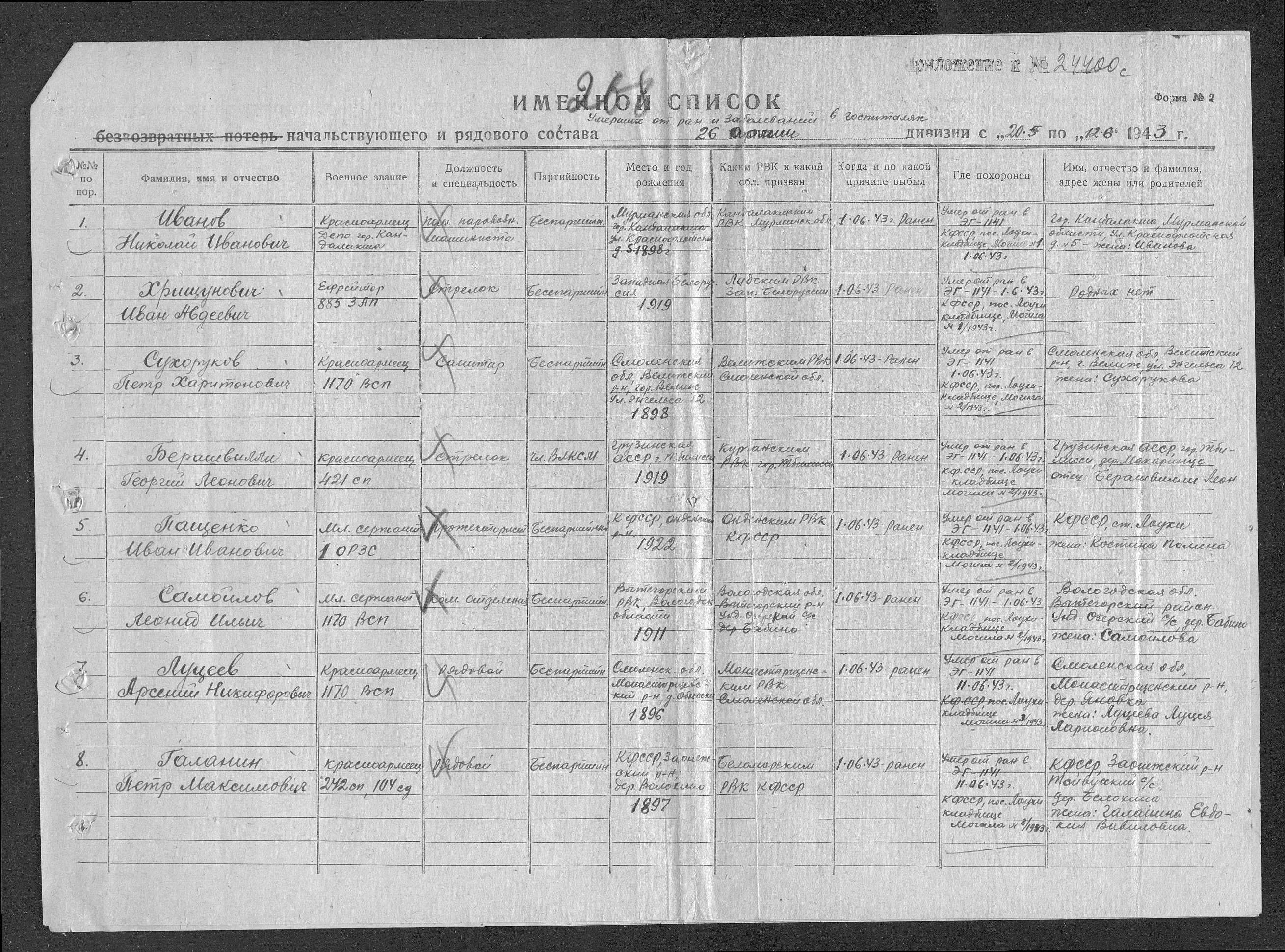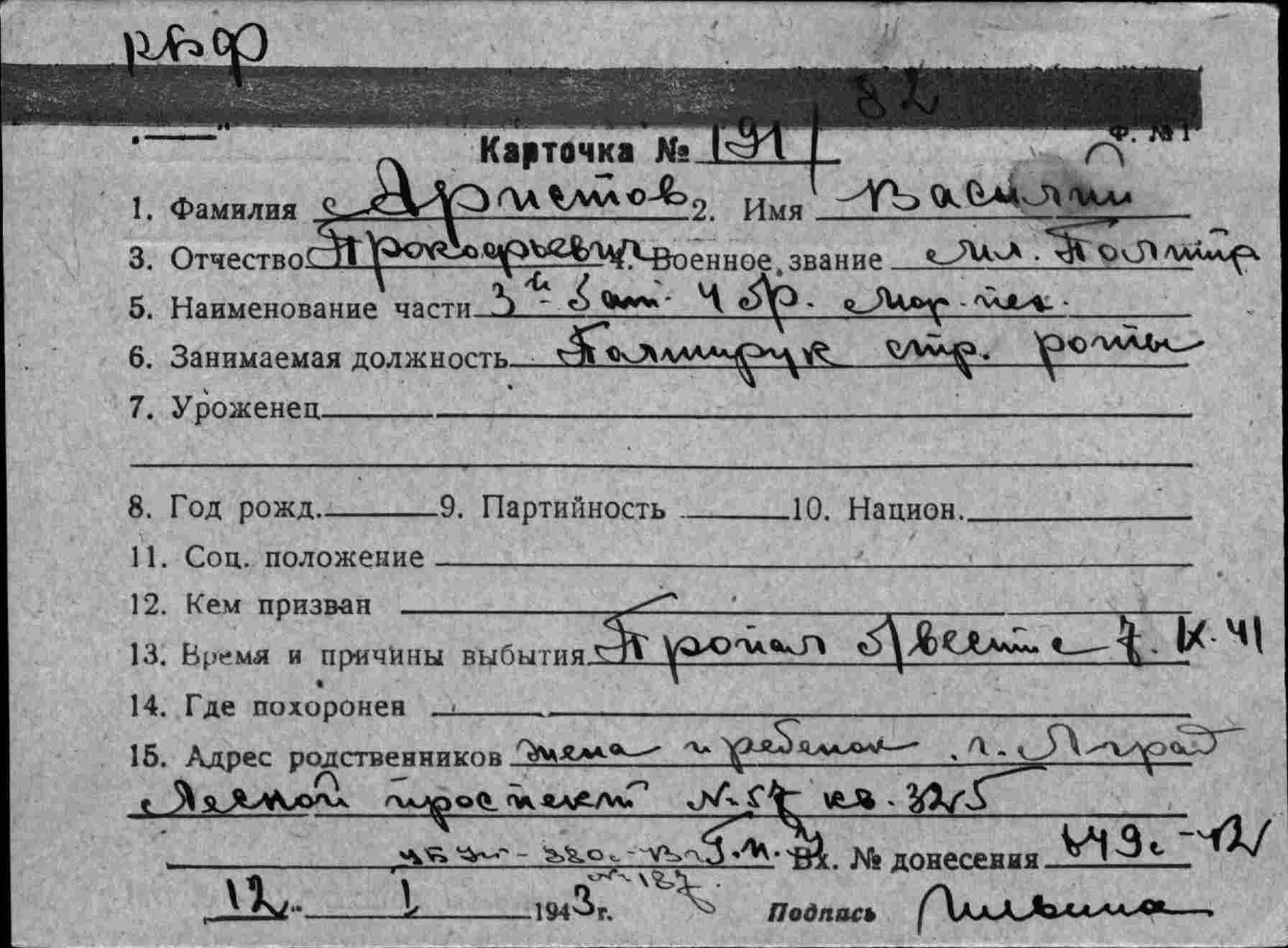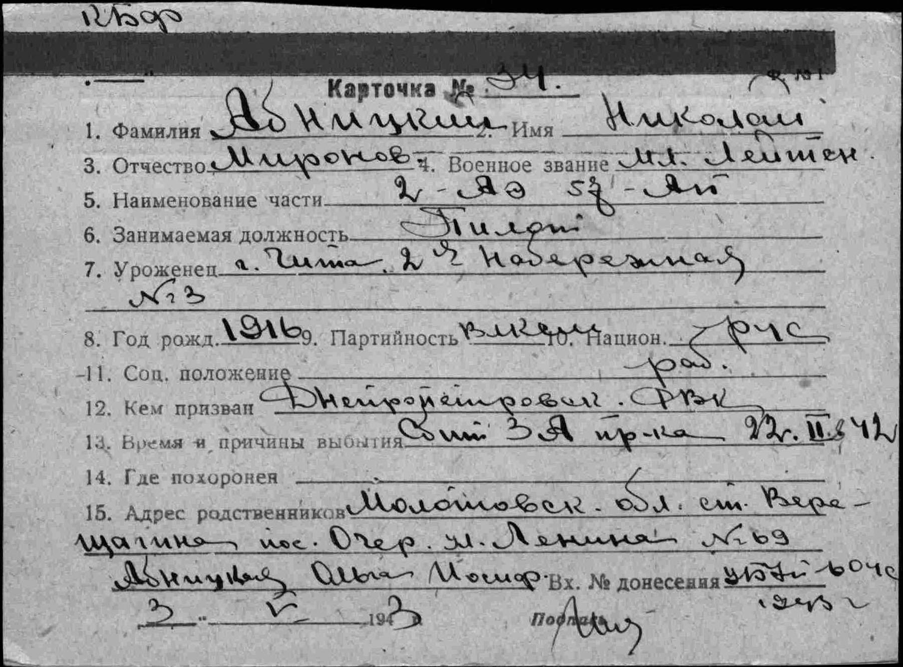 Картотека безвозвратных потерь. Ящик № 011. Страница 503 Перейти к списку