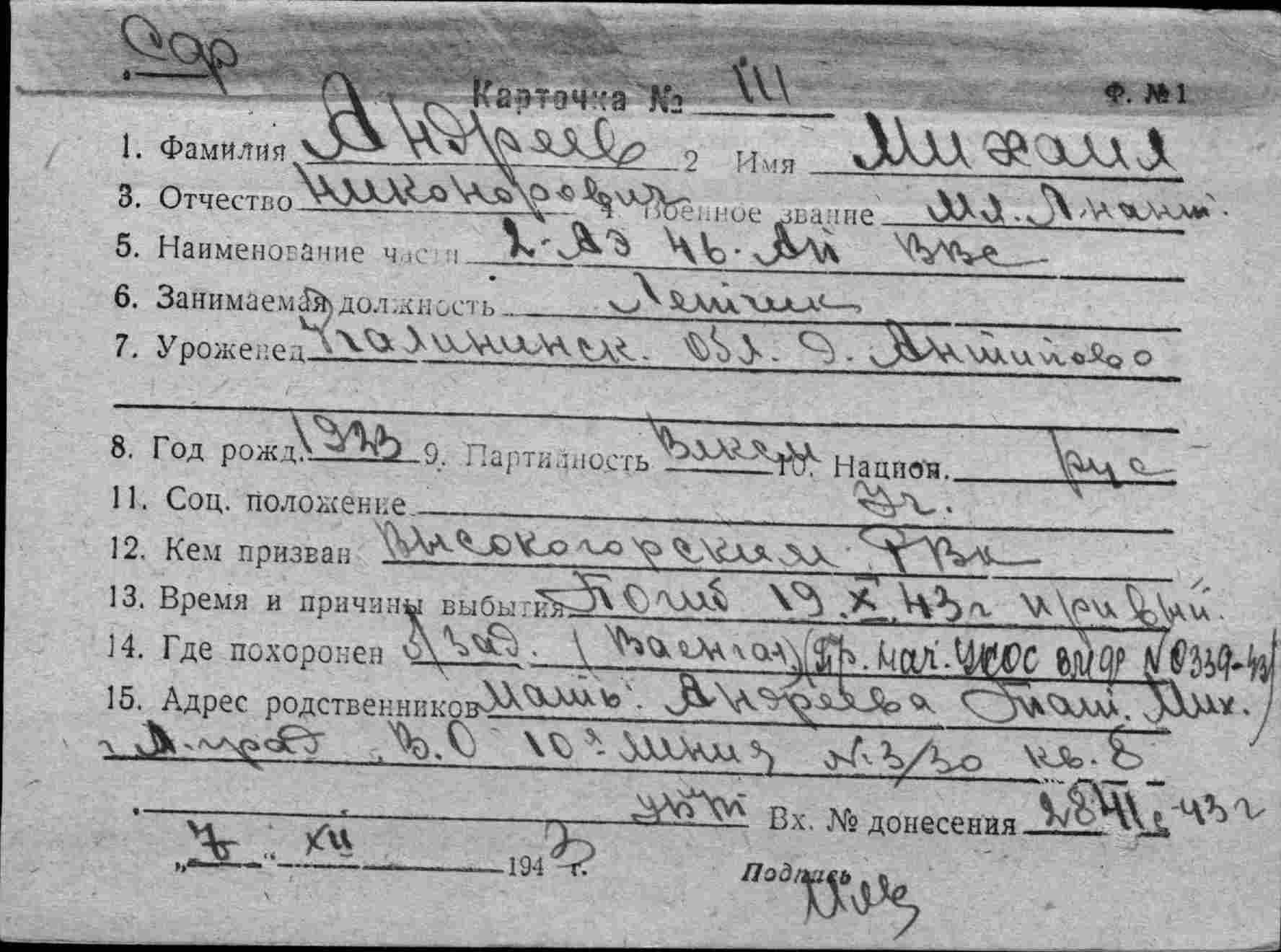 Картотека безвозвратных потерь. Ящик № 001. Страница 443 Перейти к списку