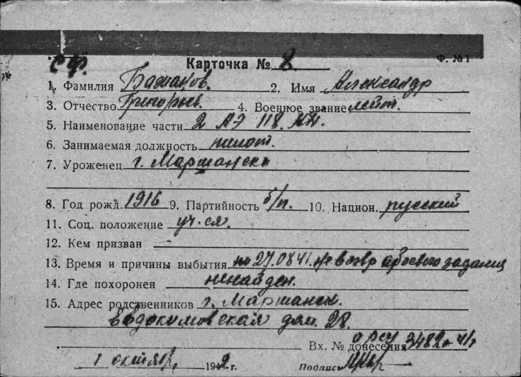 Картотека безвозвратных потерь. Ящик № 003. Страница 953 Перейти к списку