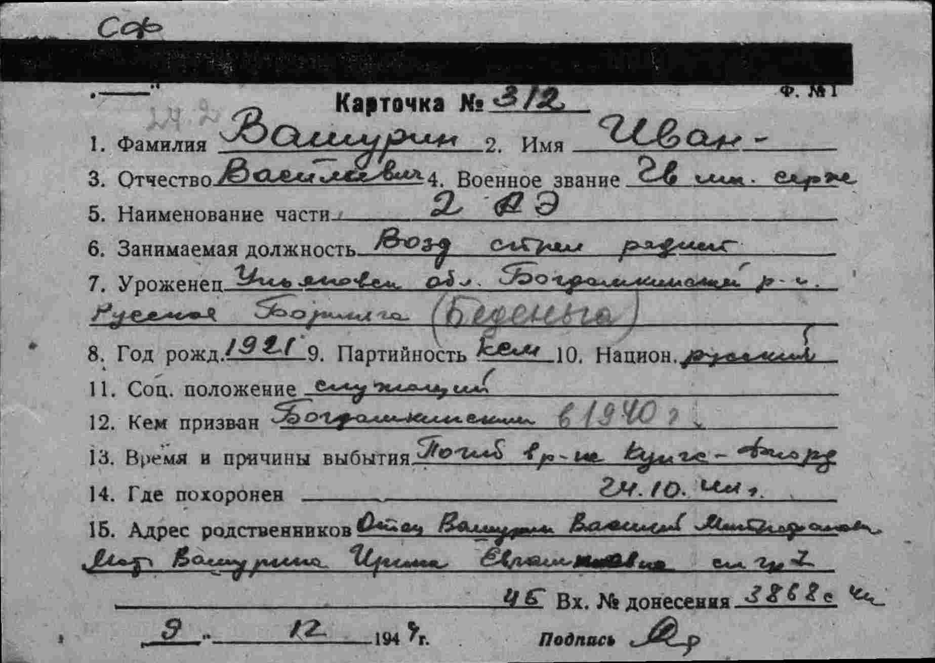 Картотека безвозвратных потерь. Ящик № 002. Страница 1853 Перейти к списку