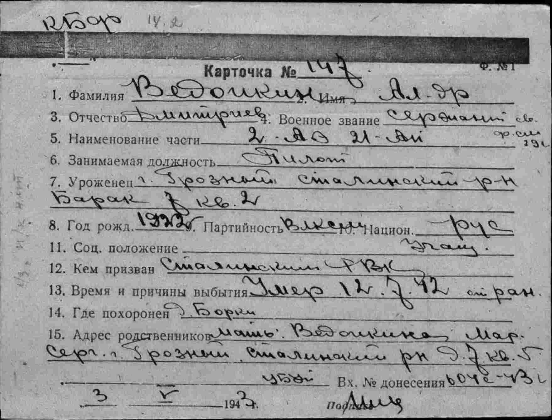 Картотека безвозвратных потерь. Ящик № 004. Страница 21 Перейти к списку