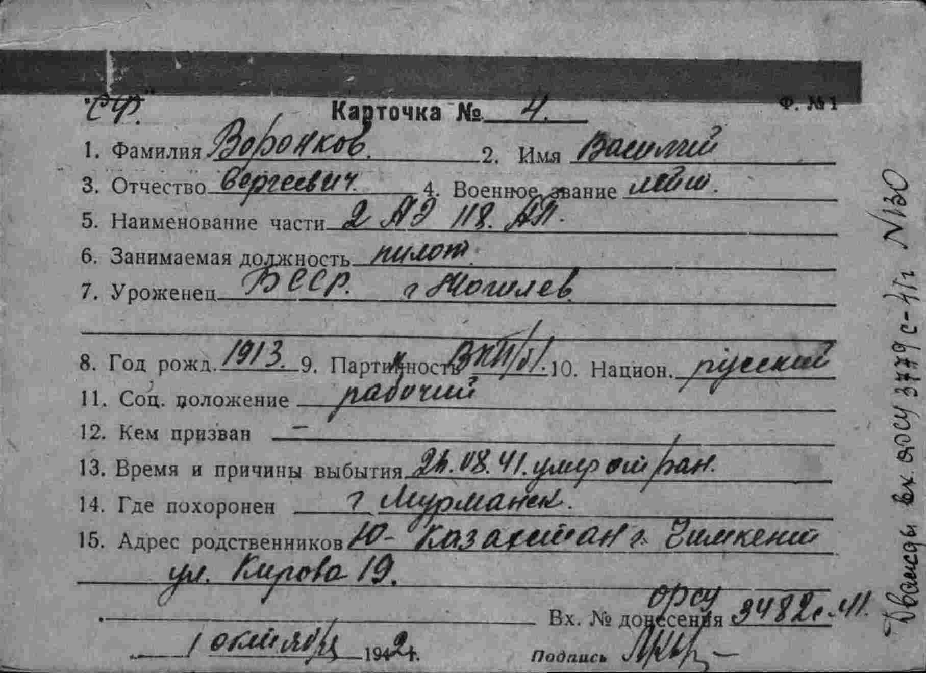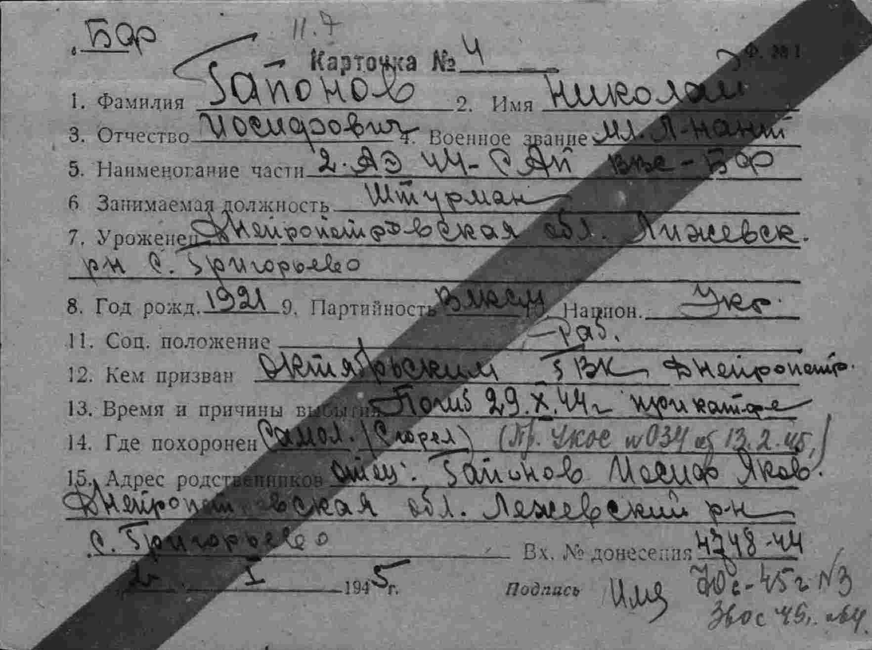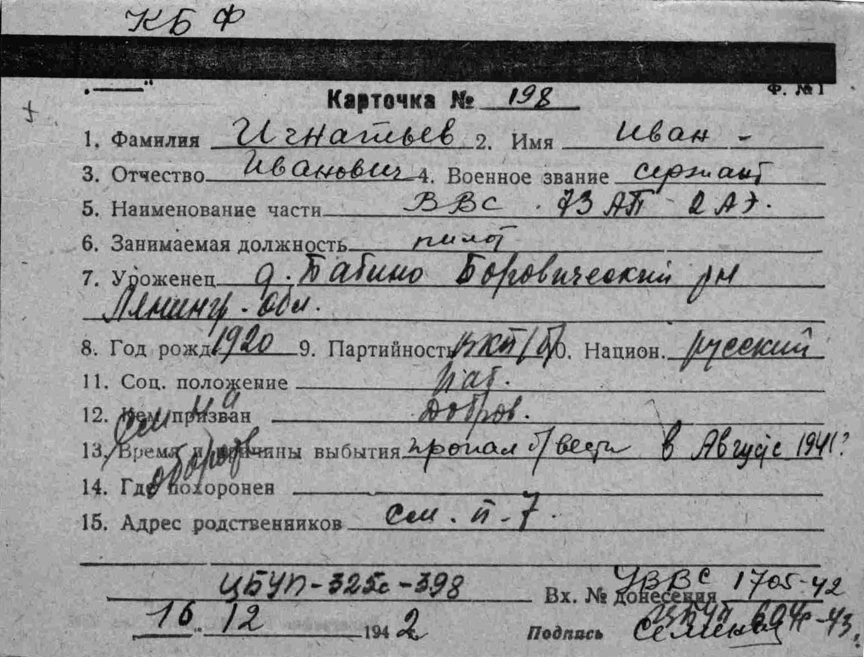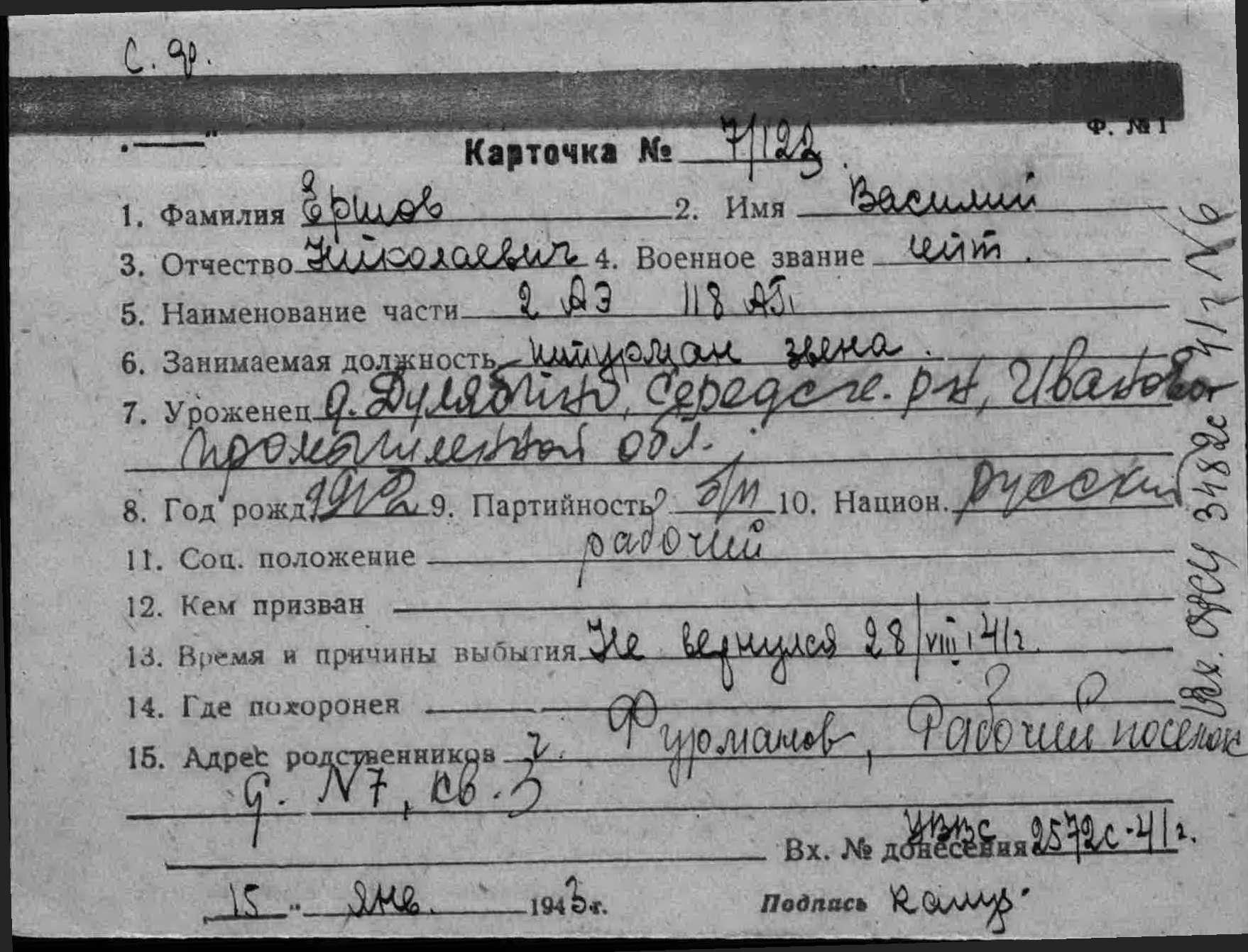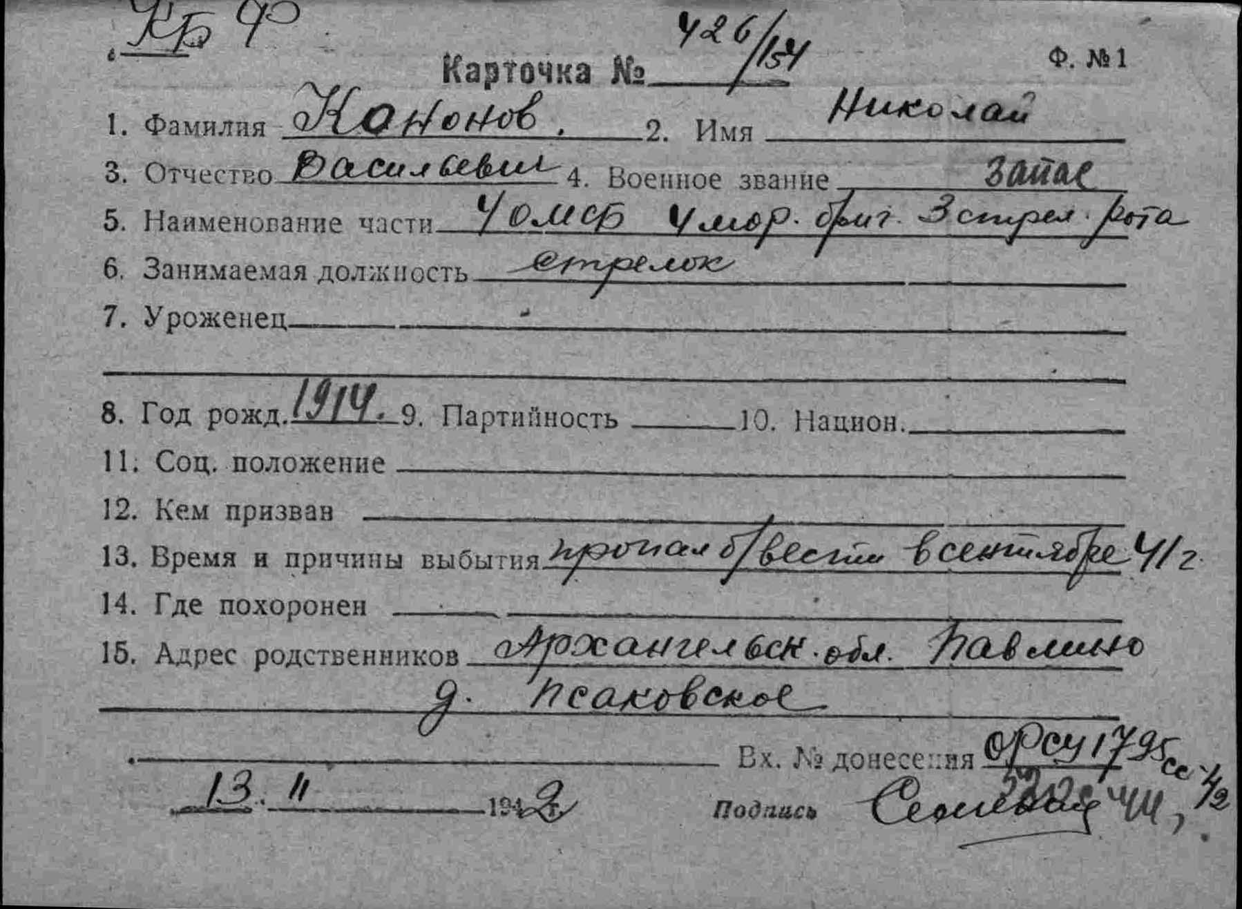 Картотека безвозвратных потерь. Ящик № 042. Страница 2921 Перейти к списку