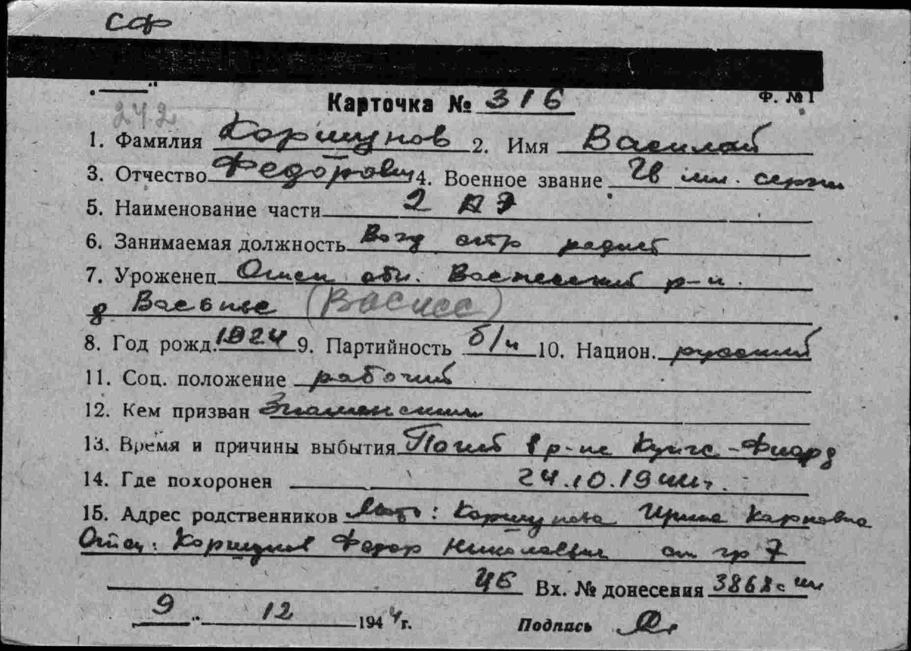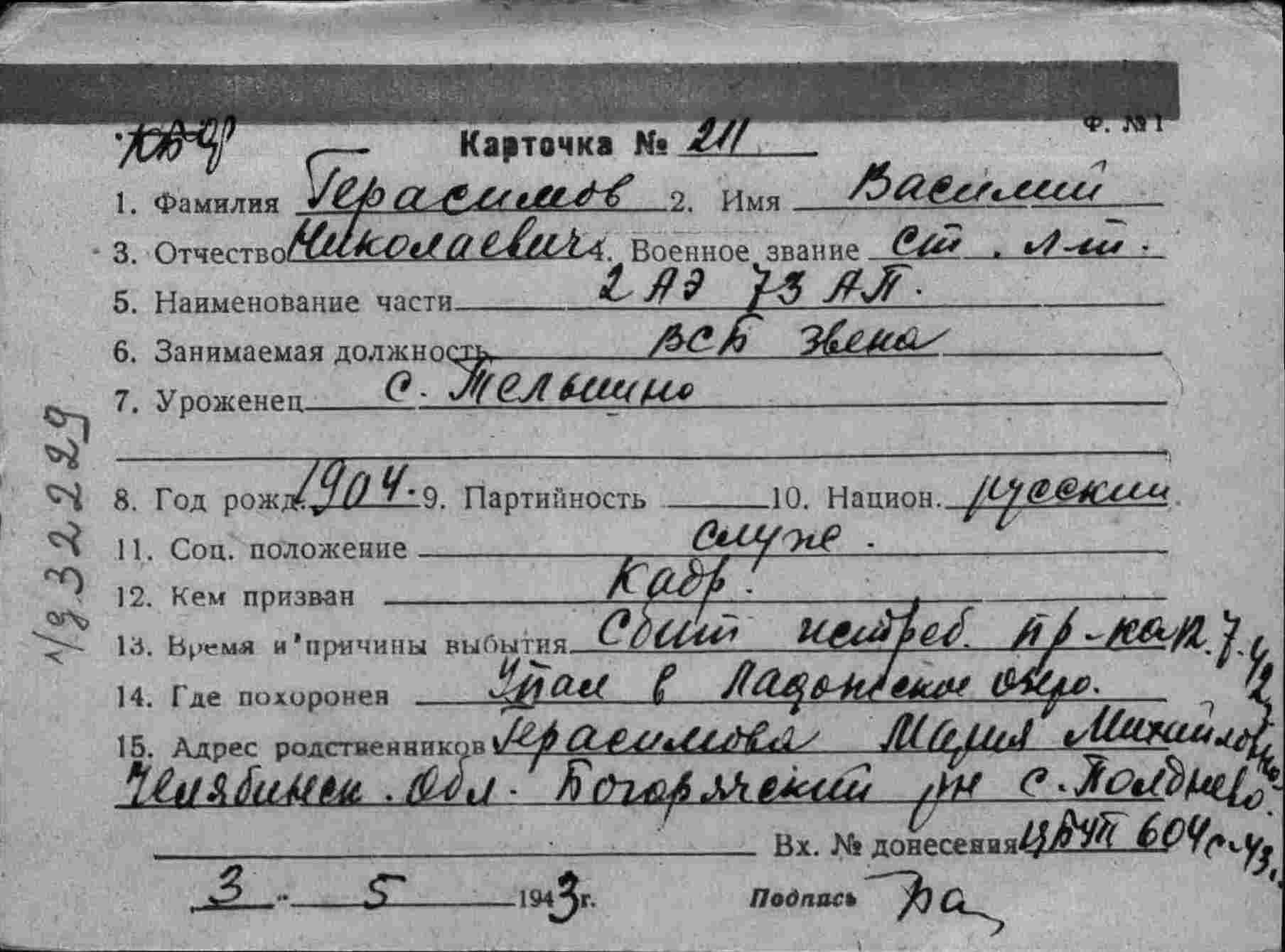Картотека безвозвратных потерь. Ящик № 025. Страница 2833 Перейти к списку