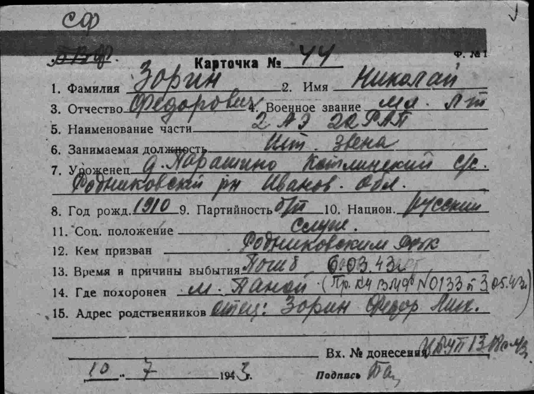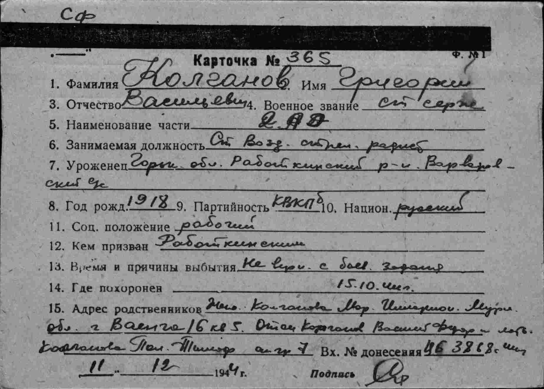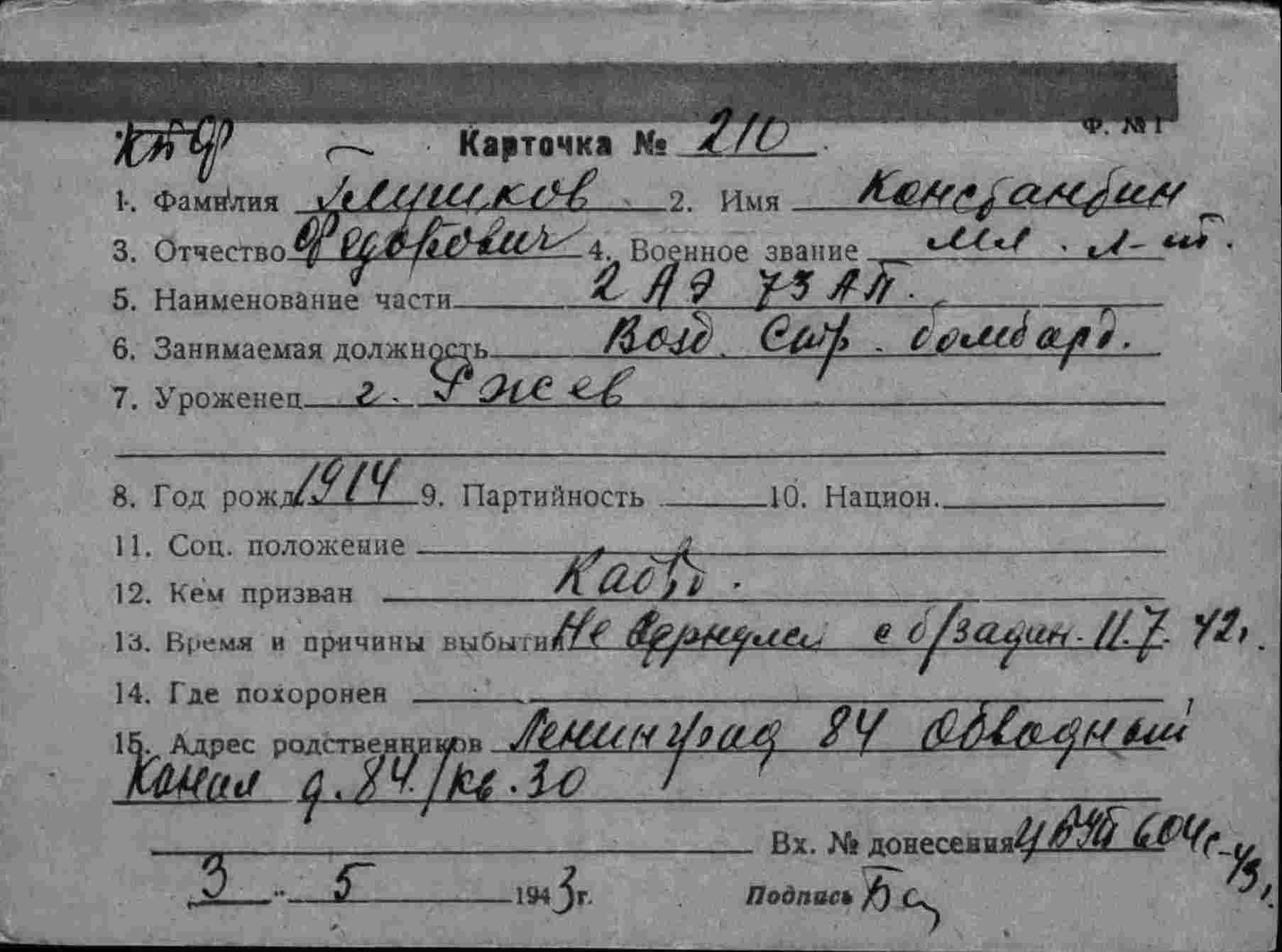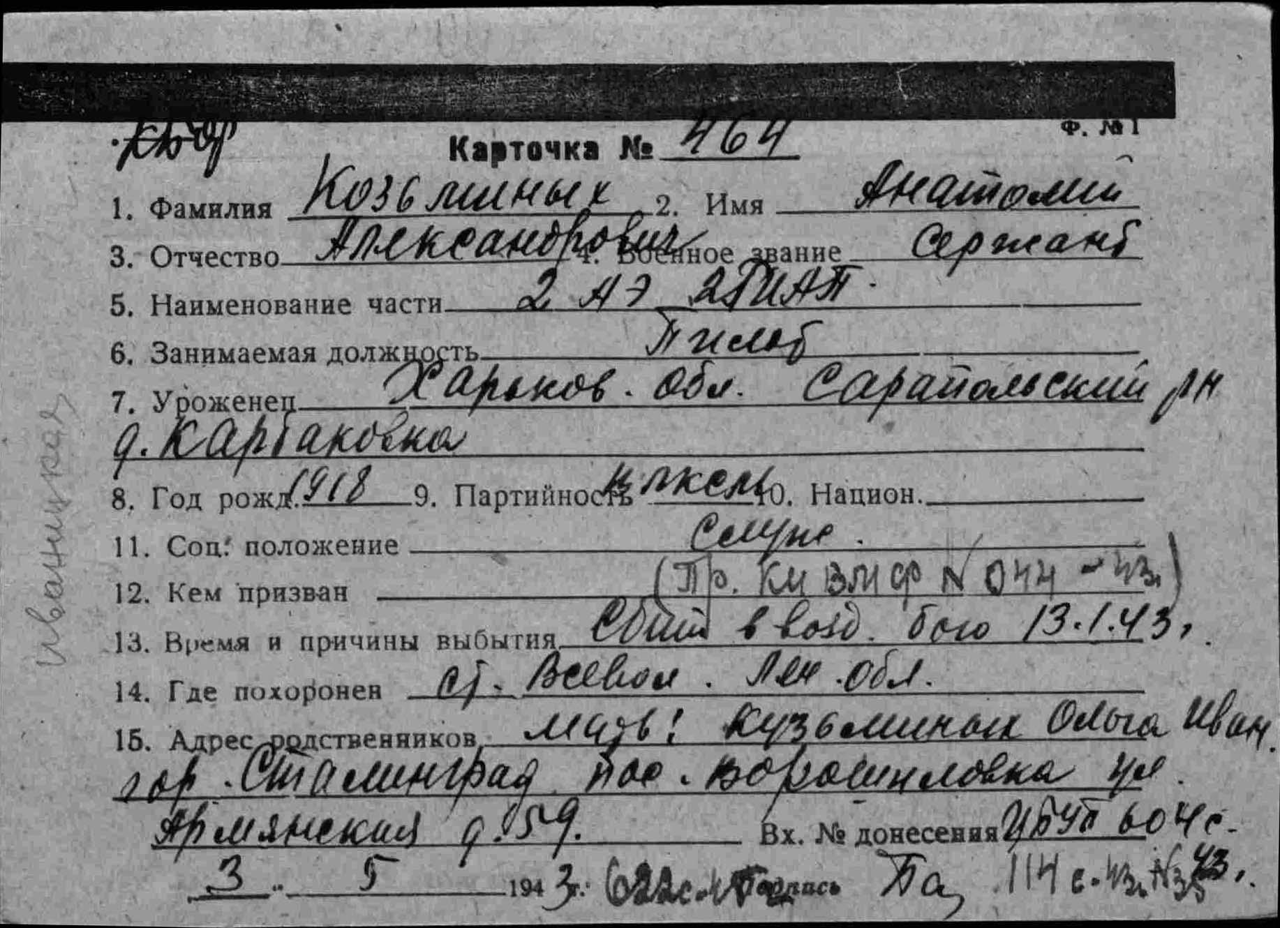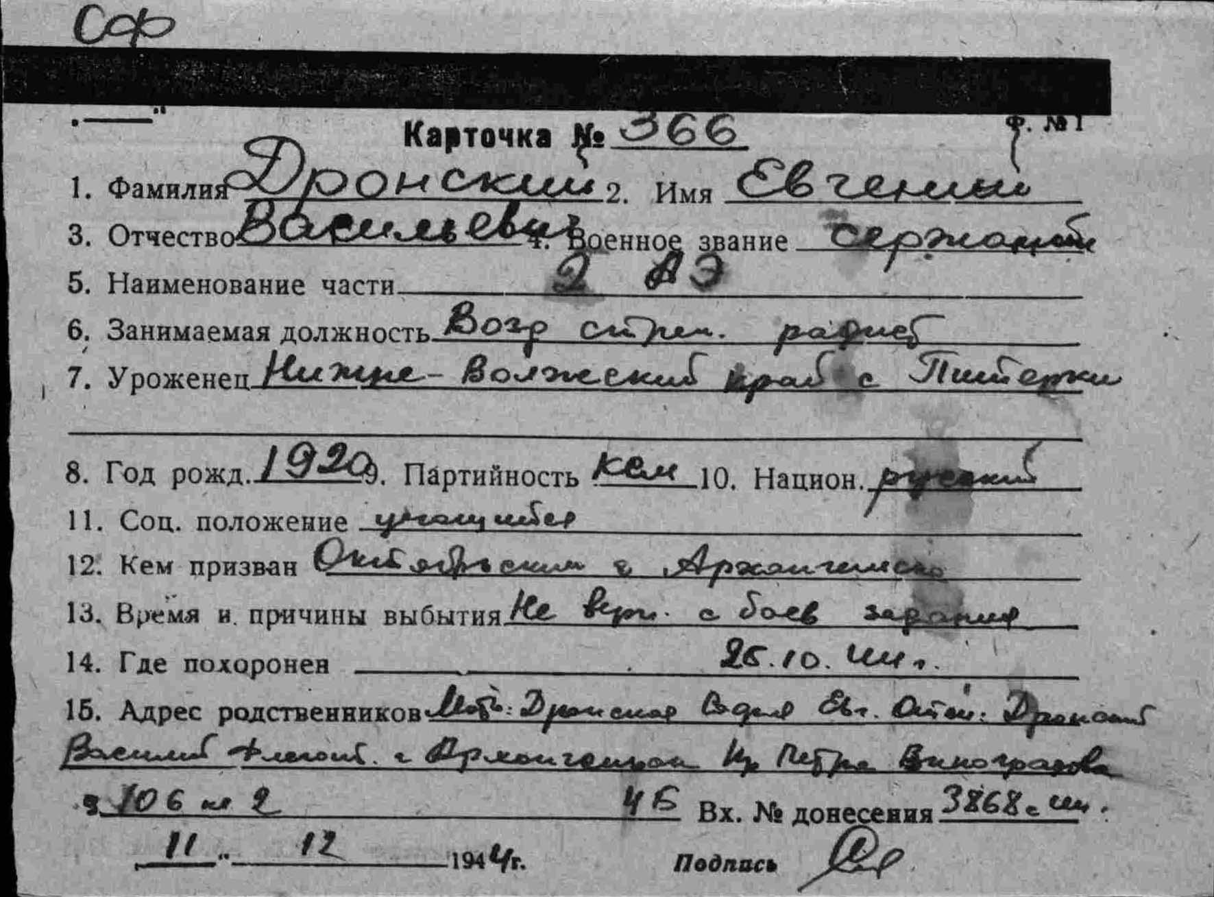 Картотека безвозвратных потерь. Ящик № 040. Страница 403 Перейти к списку