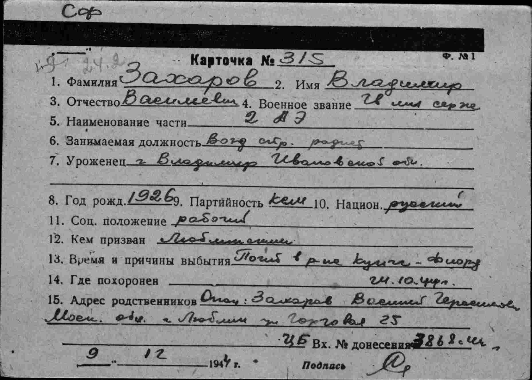 Картотека безвозвратных потерь. Ящик № 026. Страница 2395 Перейти к списку
