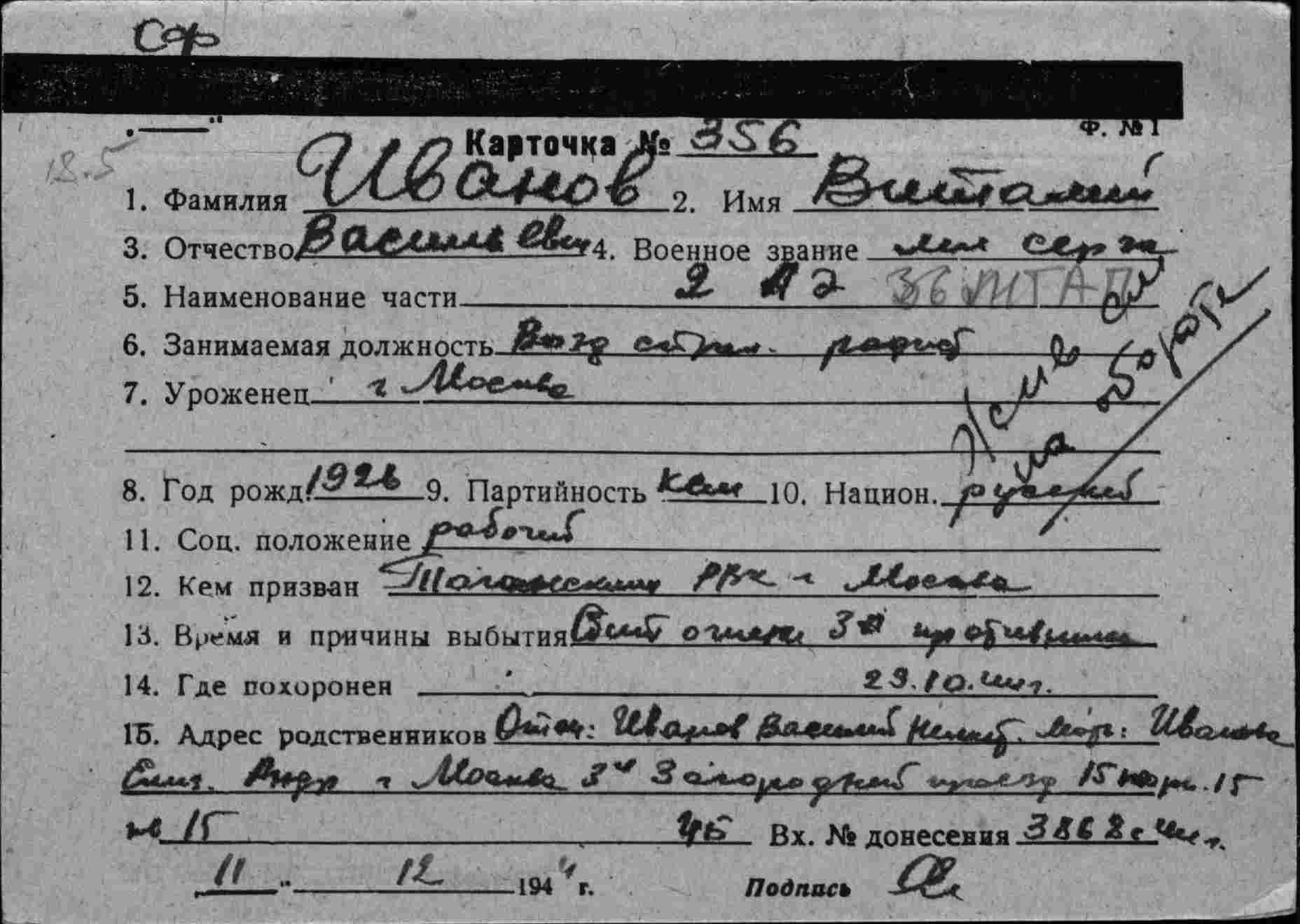 Картотека безвозвратных потерь. Ящик № 036. Страница 1295 Перейти к списку