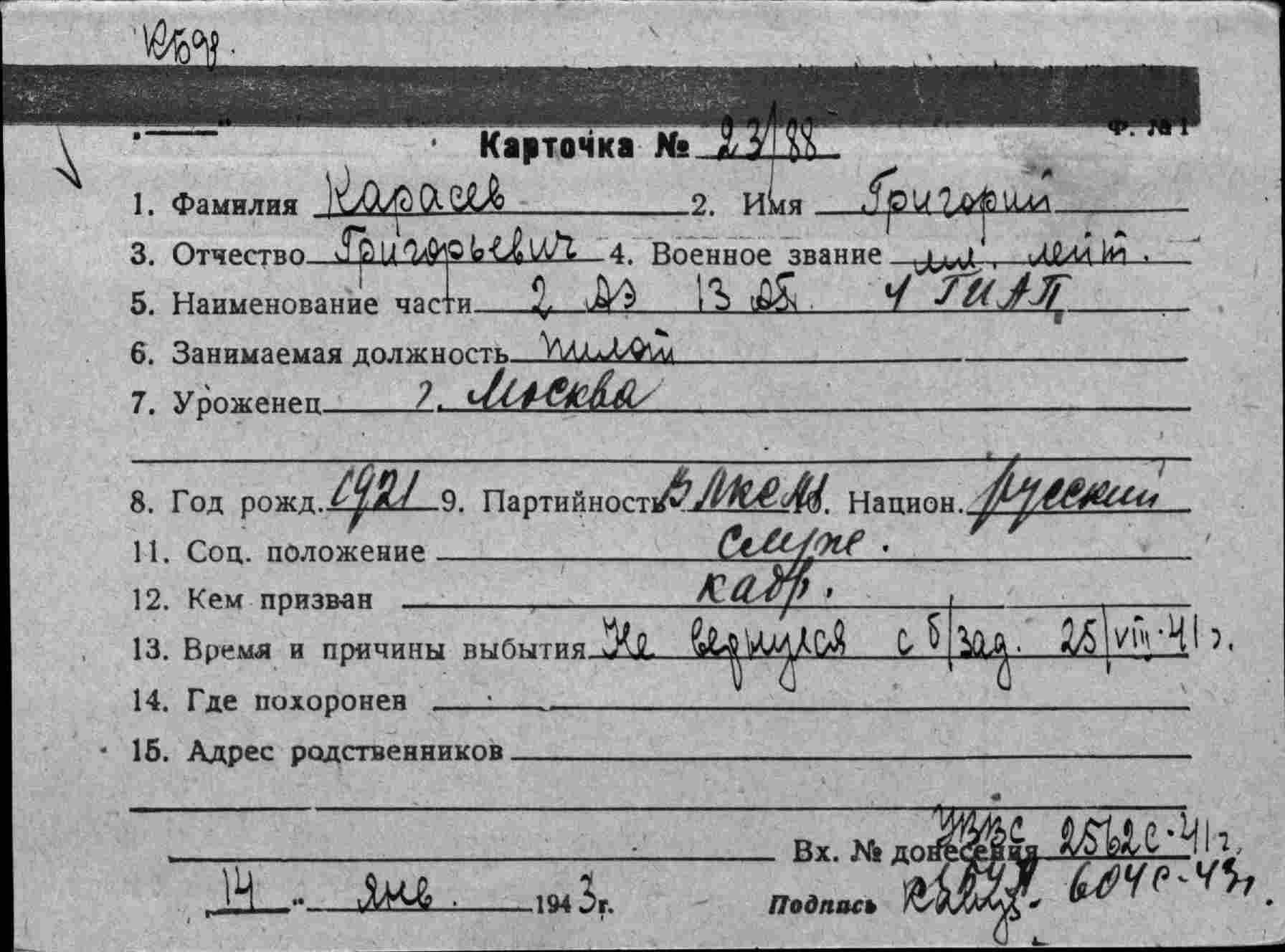 Картотека безвозвратных потерь. Ящик № 034. Страница 549 Перейти к списку