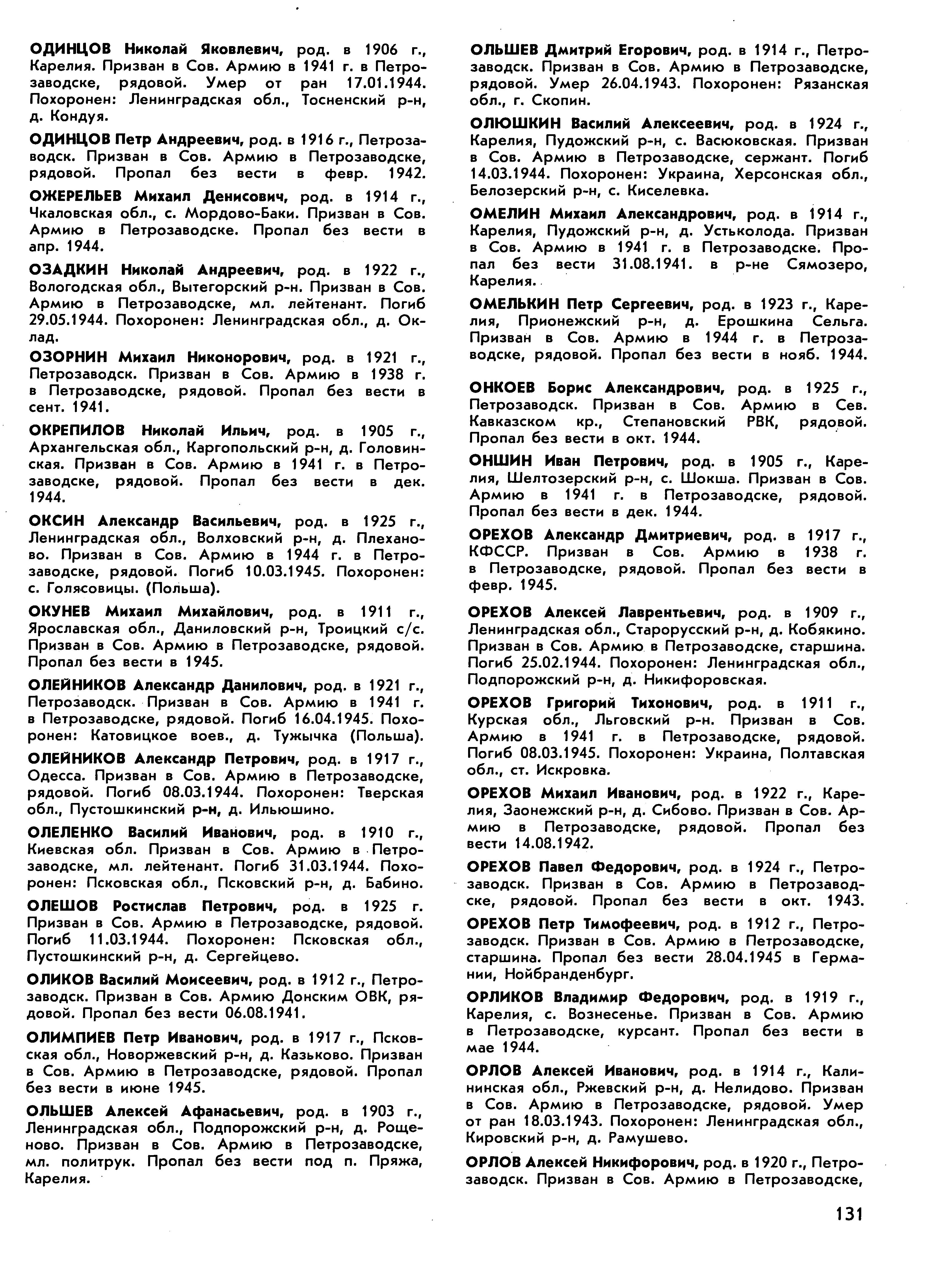 Книга памяти. Республика Карелия. Том 1. Страница 131 Перейти к списку