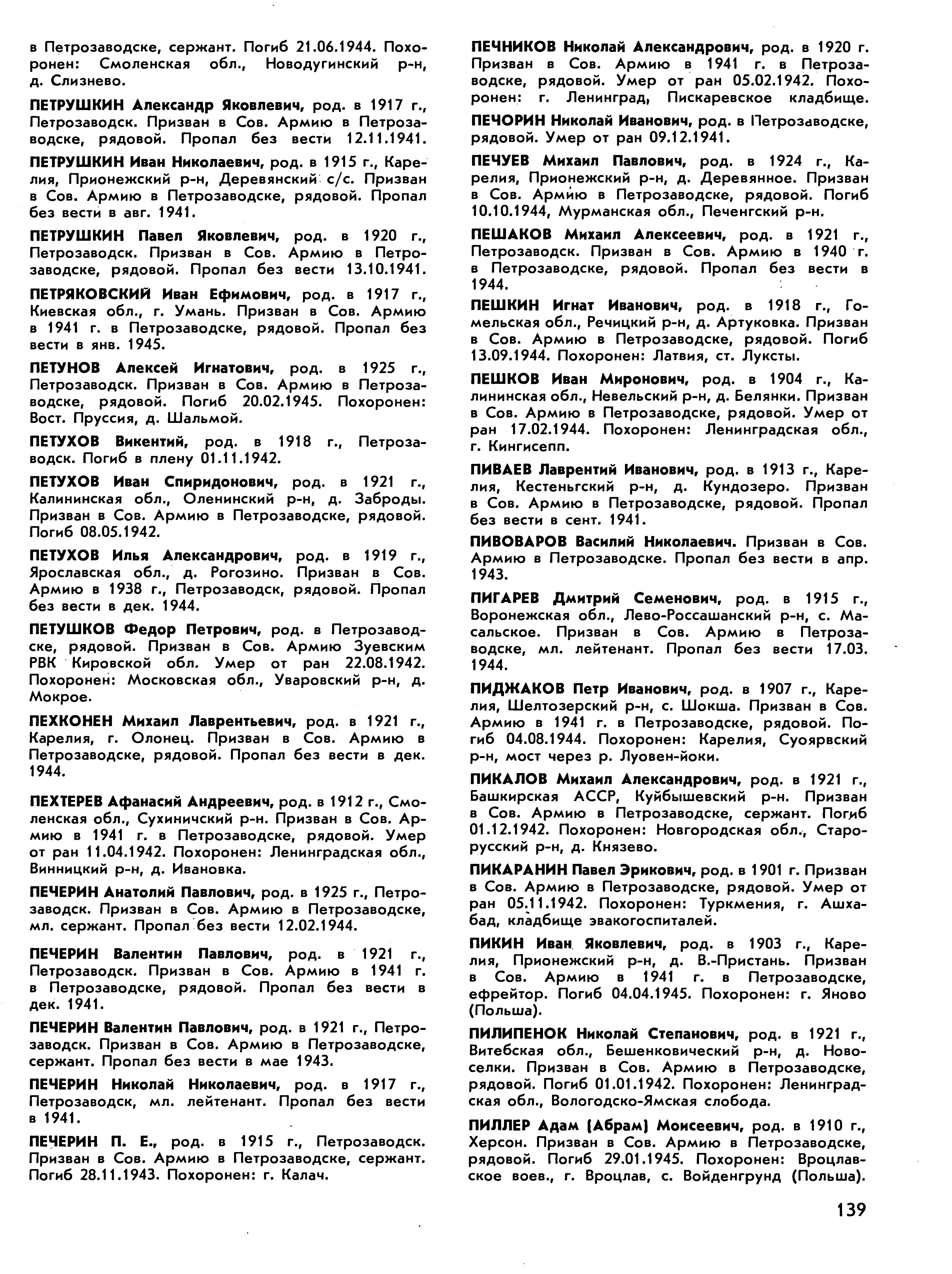 Книга памяти. Республика Карелия. Том 1. Страница 139 Перейти к списку