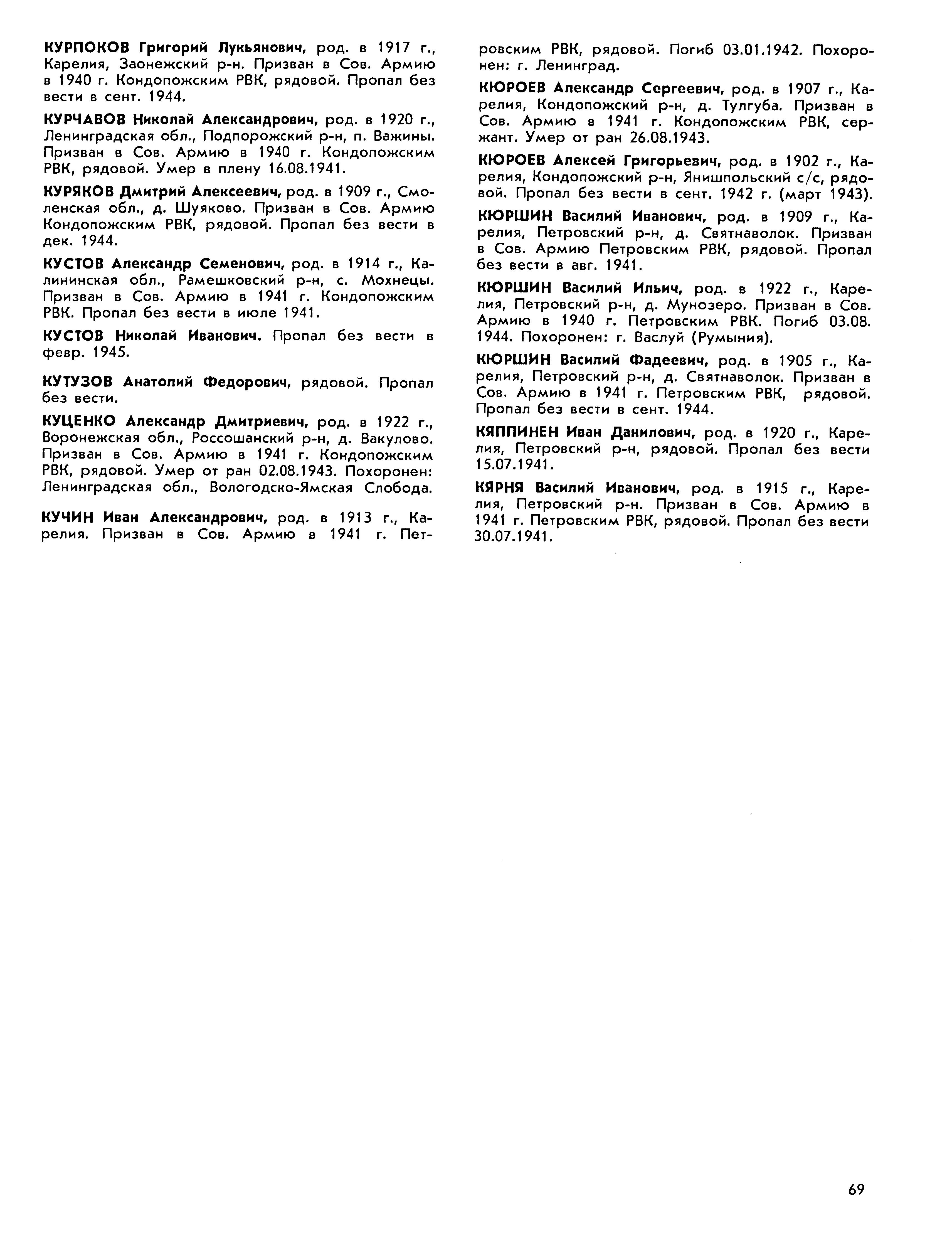 Книга памяти. Республика Карелия. Том 3. Страница 69 Перейти к списку