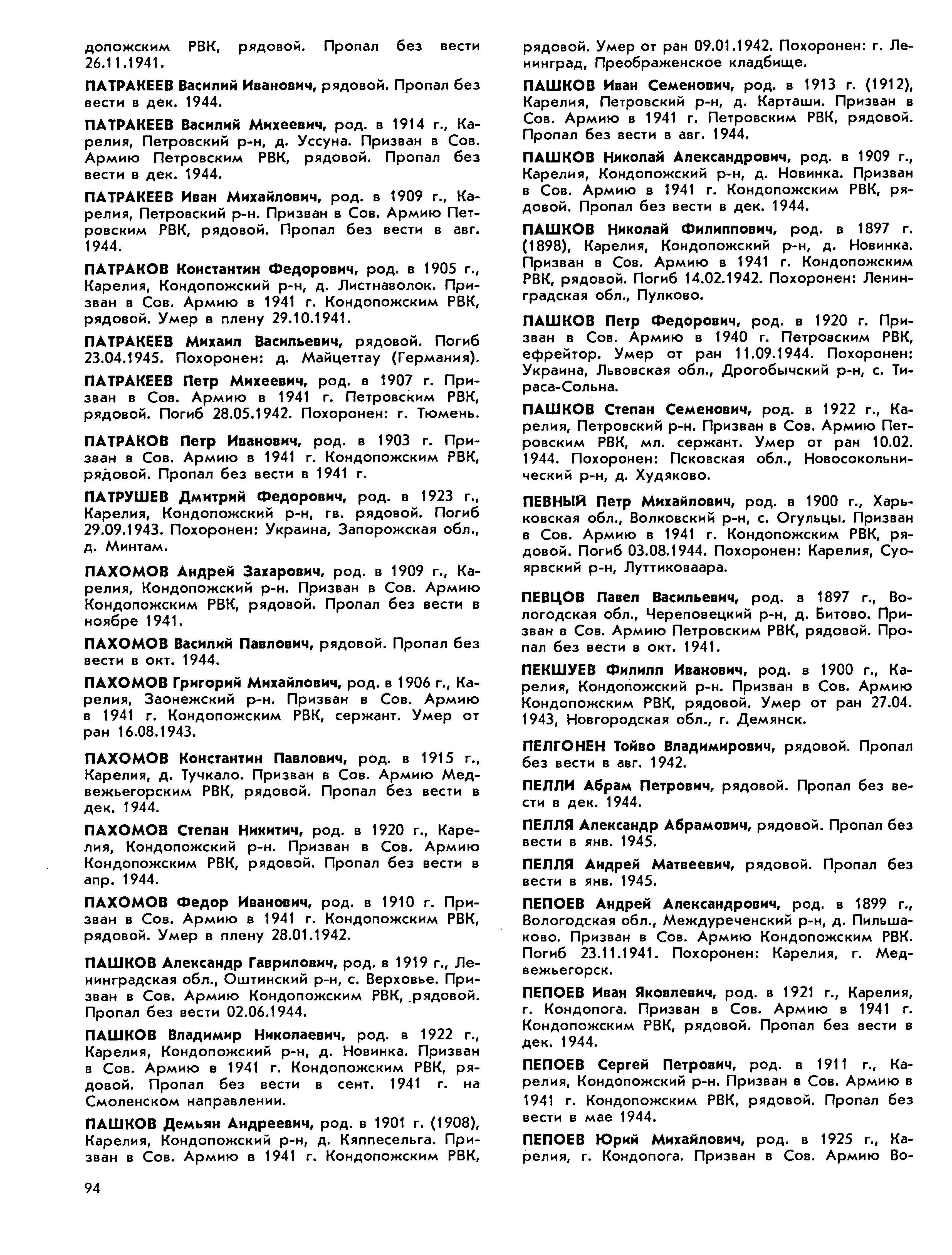 Книга памяти. Республика Карелия. Том 3. Страница 94 Перейти к списку