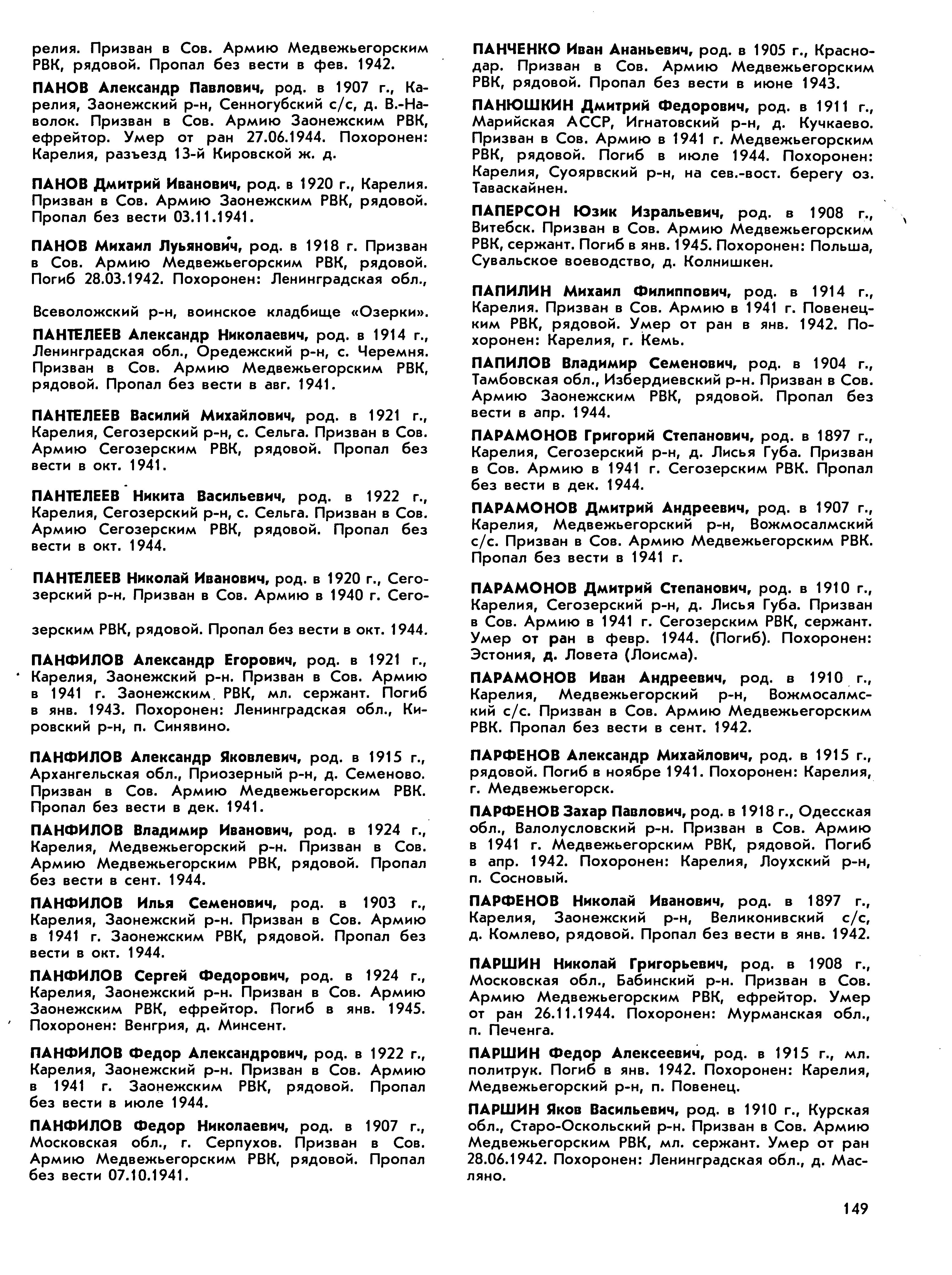 Книга памяти. Республика Карелия. Том 4. Страница 149 Перейти к списку
