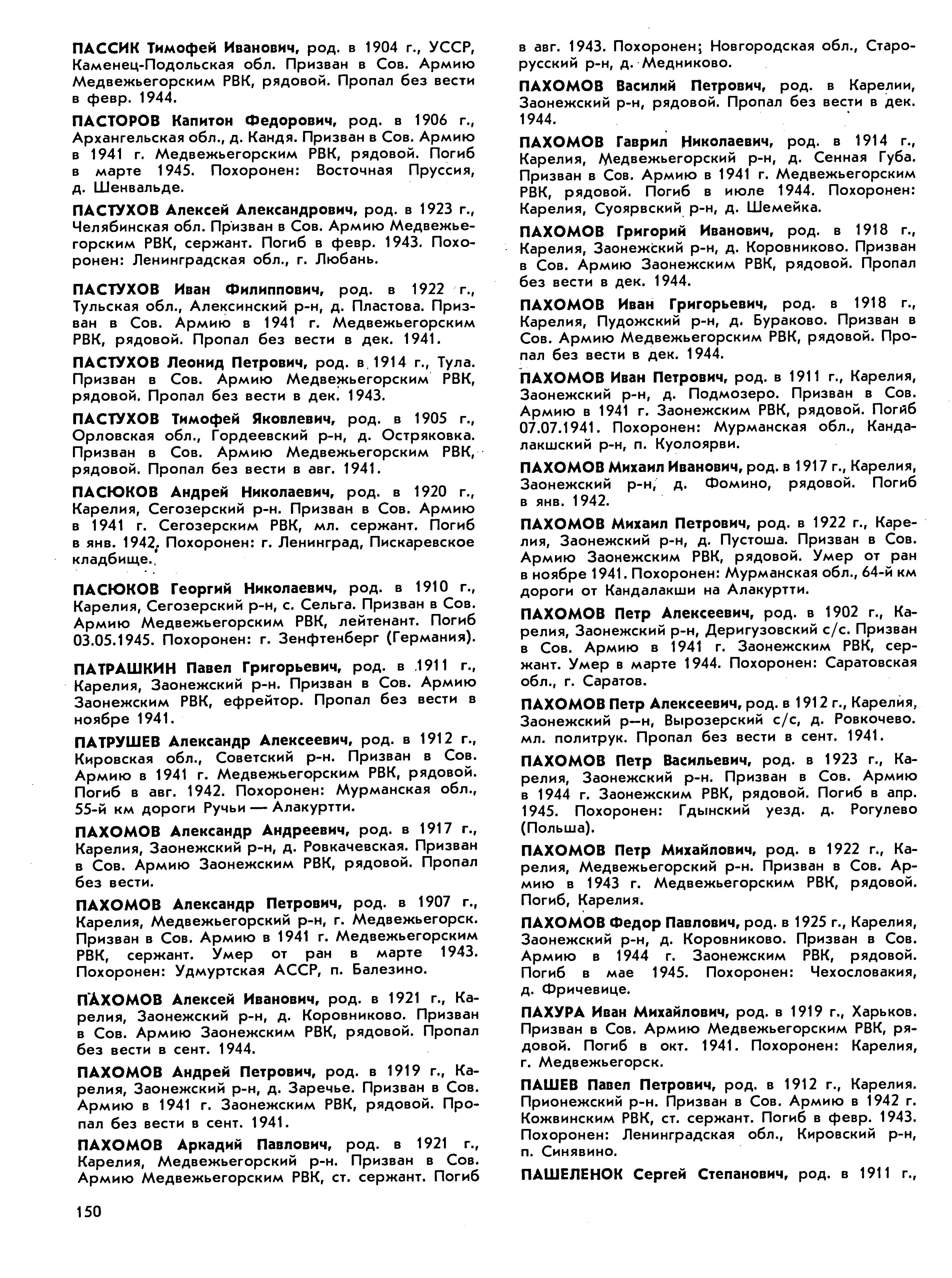 Книга памяти. Республика Карелия. Том 4. Страница 150 Перейти к списку