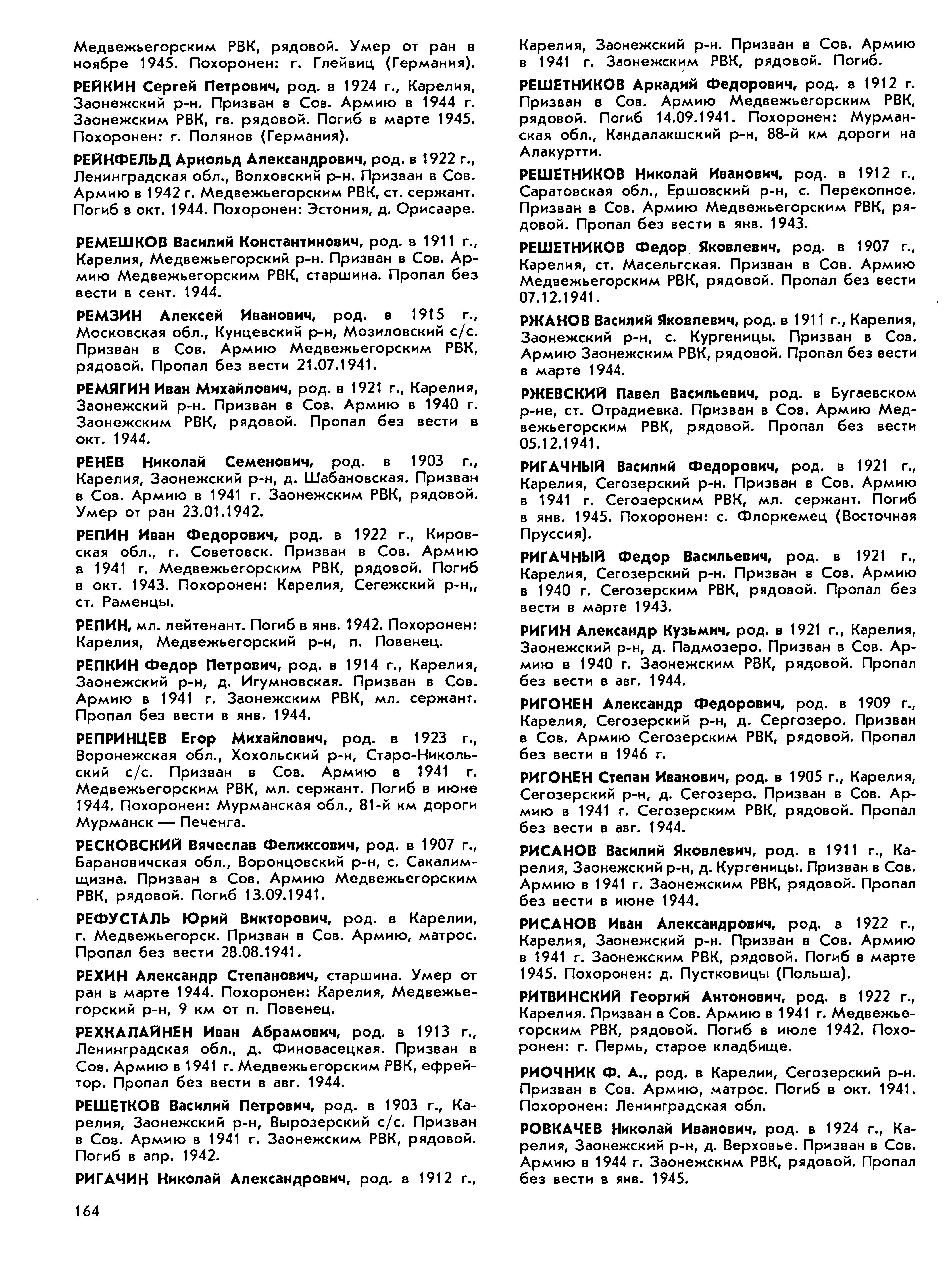 Книга памяти. Республика Карелия. Том 4. Страница 164 Перейти к списку