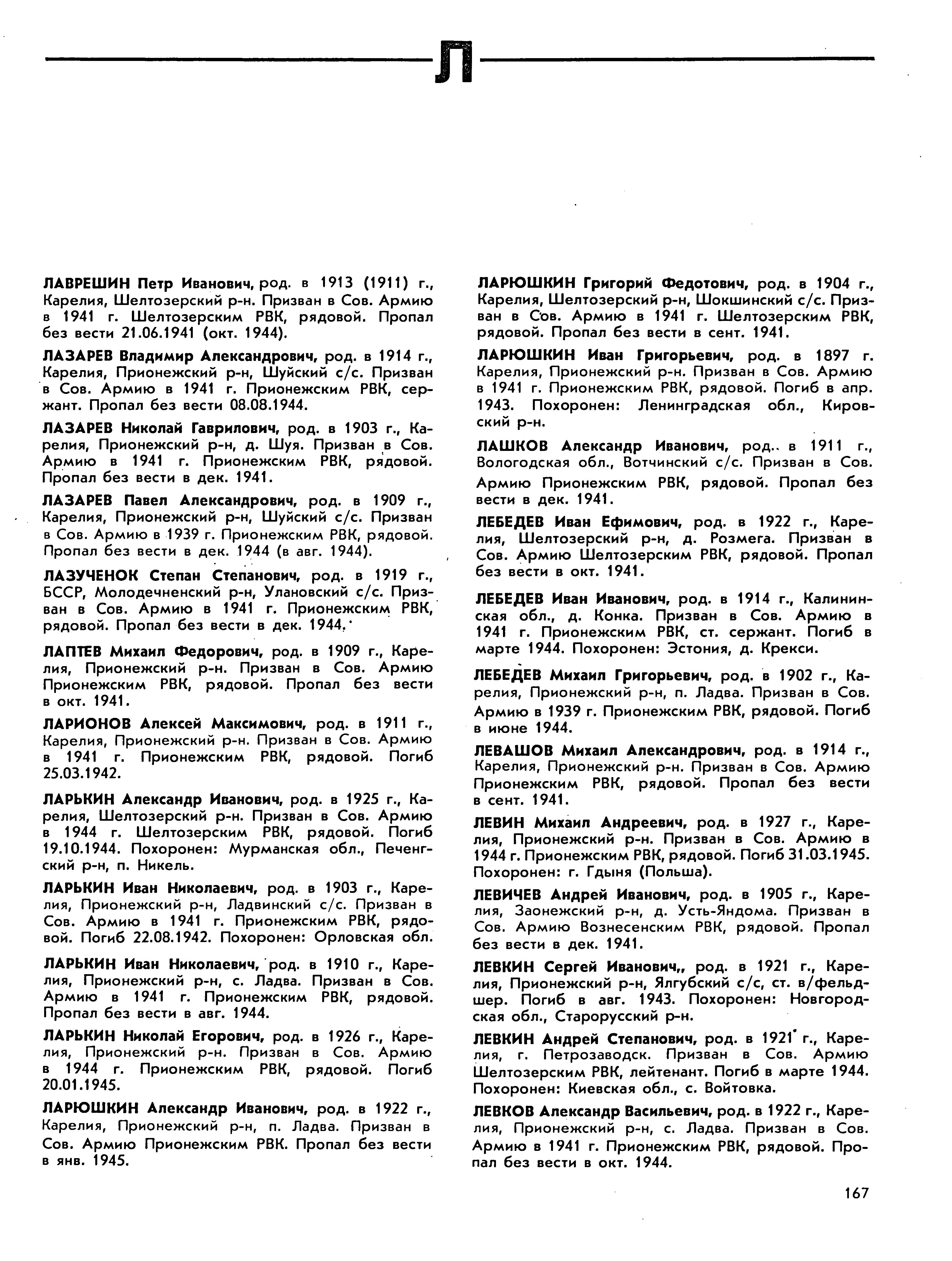 Книга памяти. Республика Карелия. Том 5. Страница 167 Перейти к списку