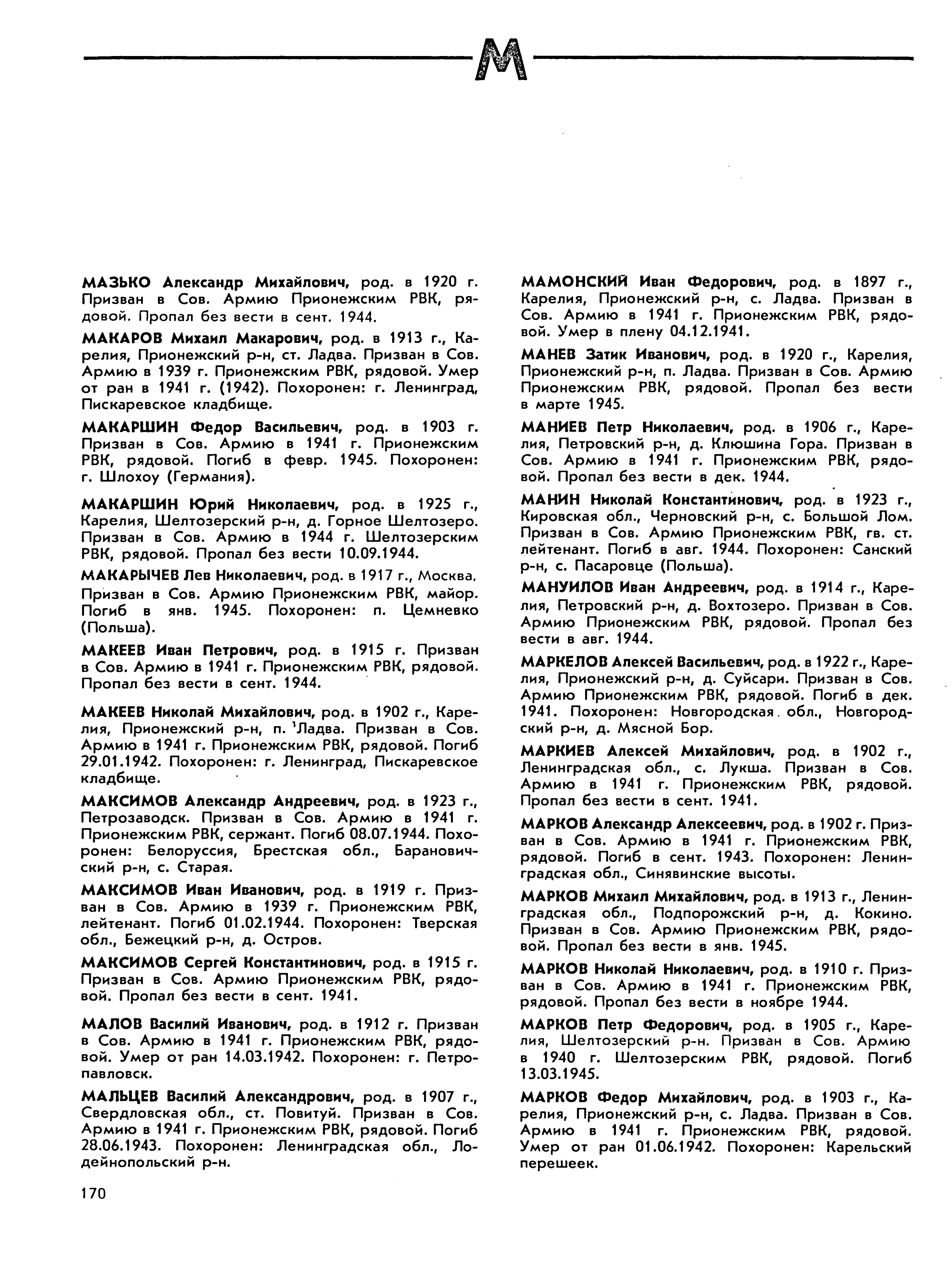 Книга памяти. Республика Карелия. Том 5. Страница 170 Перейти к списку