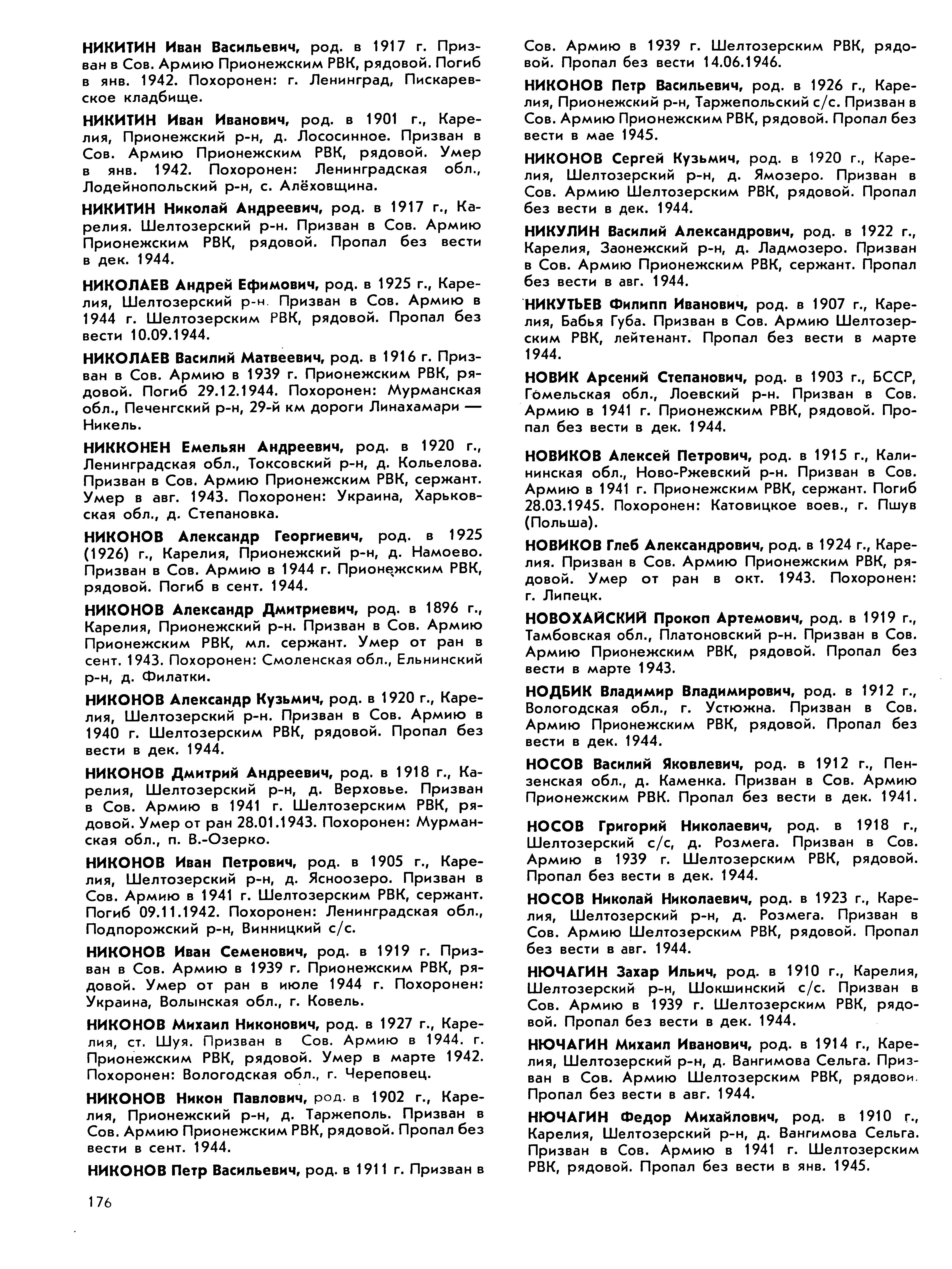Книга памяти. Республика Карелия. Том 5. Страница 176 Перейти к списку