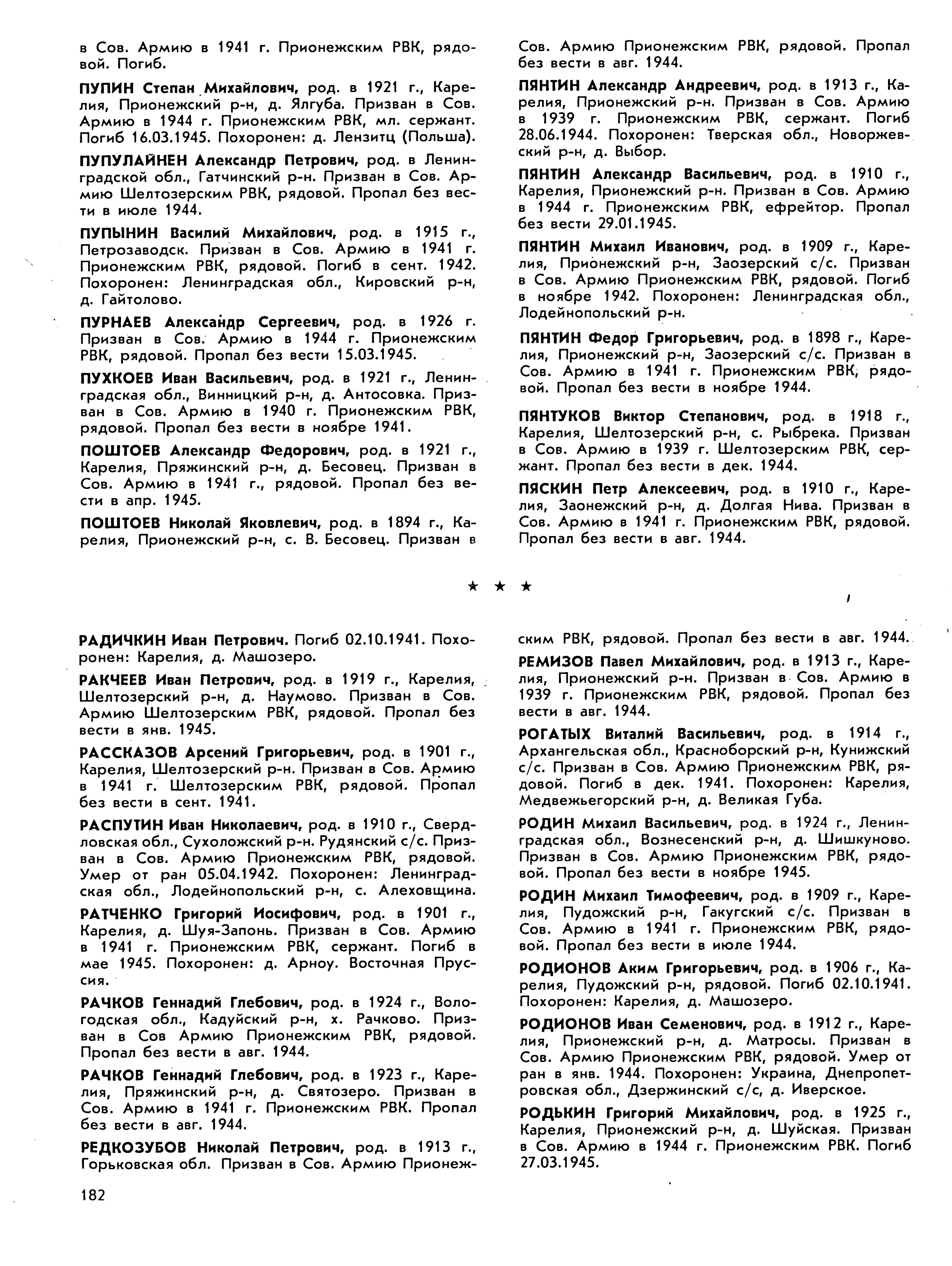 Книга памяти. Республика Карелия. Том 5. Страница 182 Перейти к списку