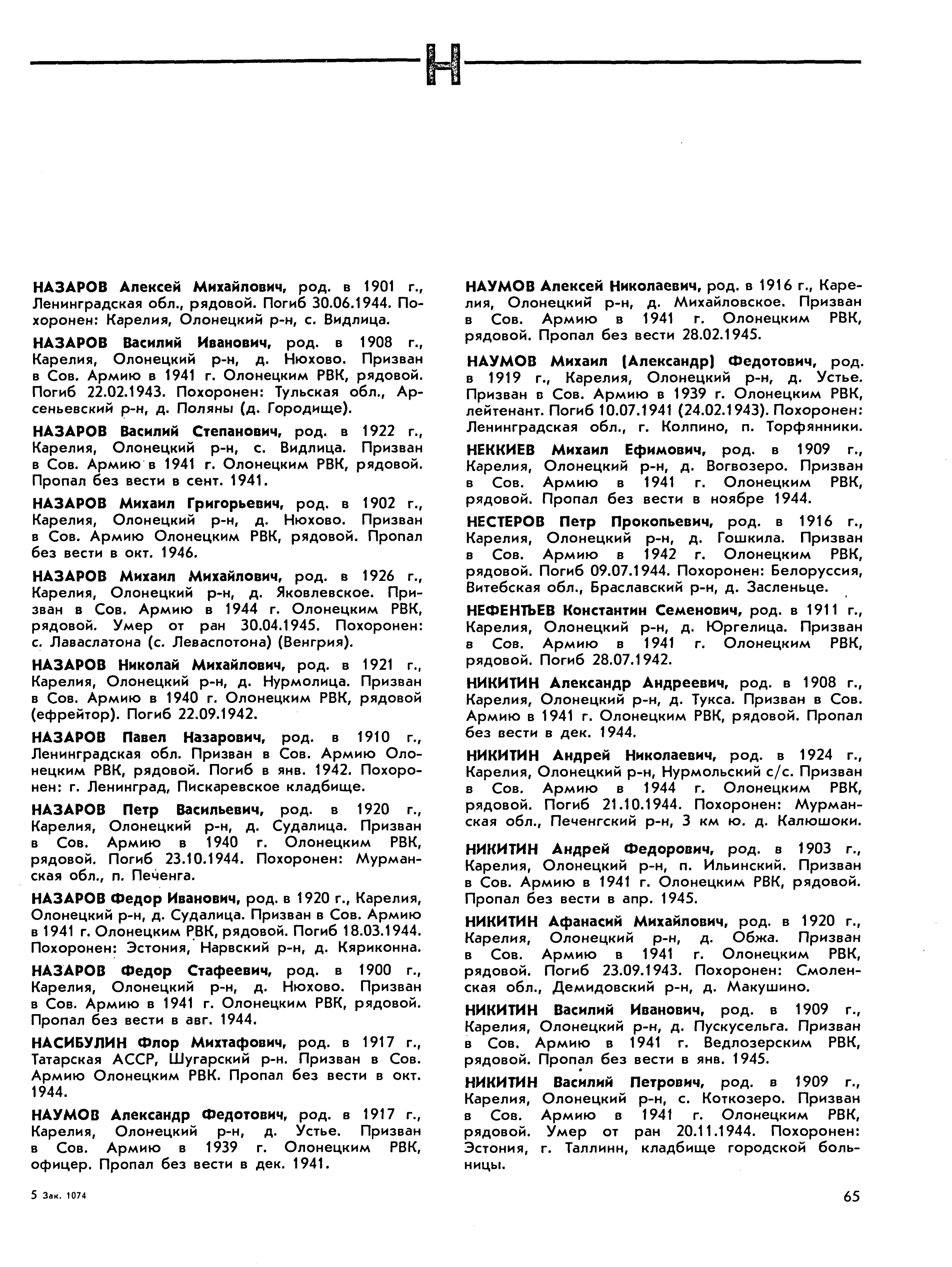 Книга памяти. Республика Карелия. Том 5. Страница 65 Перейти к списку
