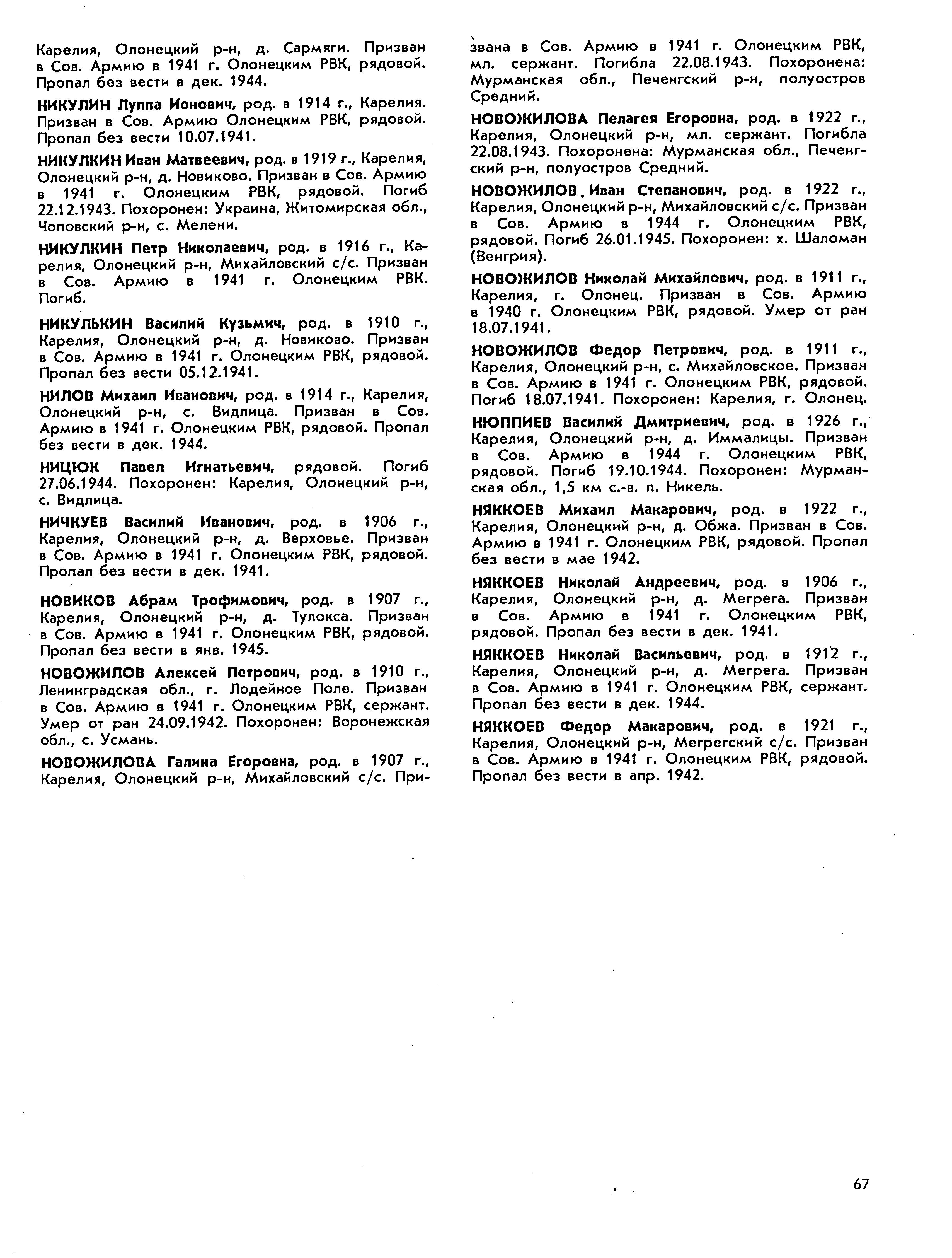 Книга памяти. Республика Карелия. Том 5. Страница 67 Перейти к списку