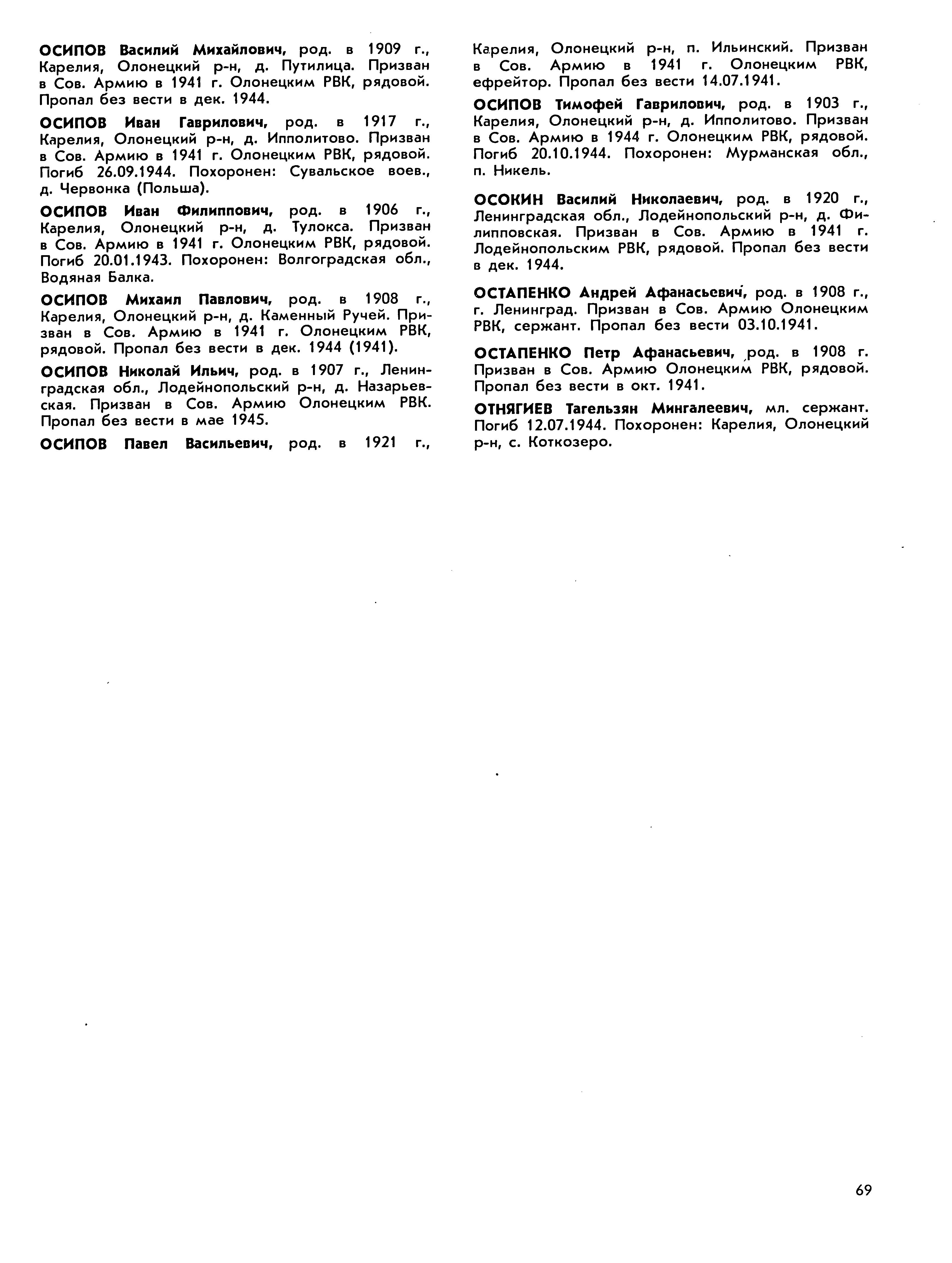 Книга памяти. Республика Карелия. Том 5. Страница 69 Перейти к списку