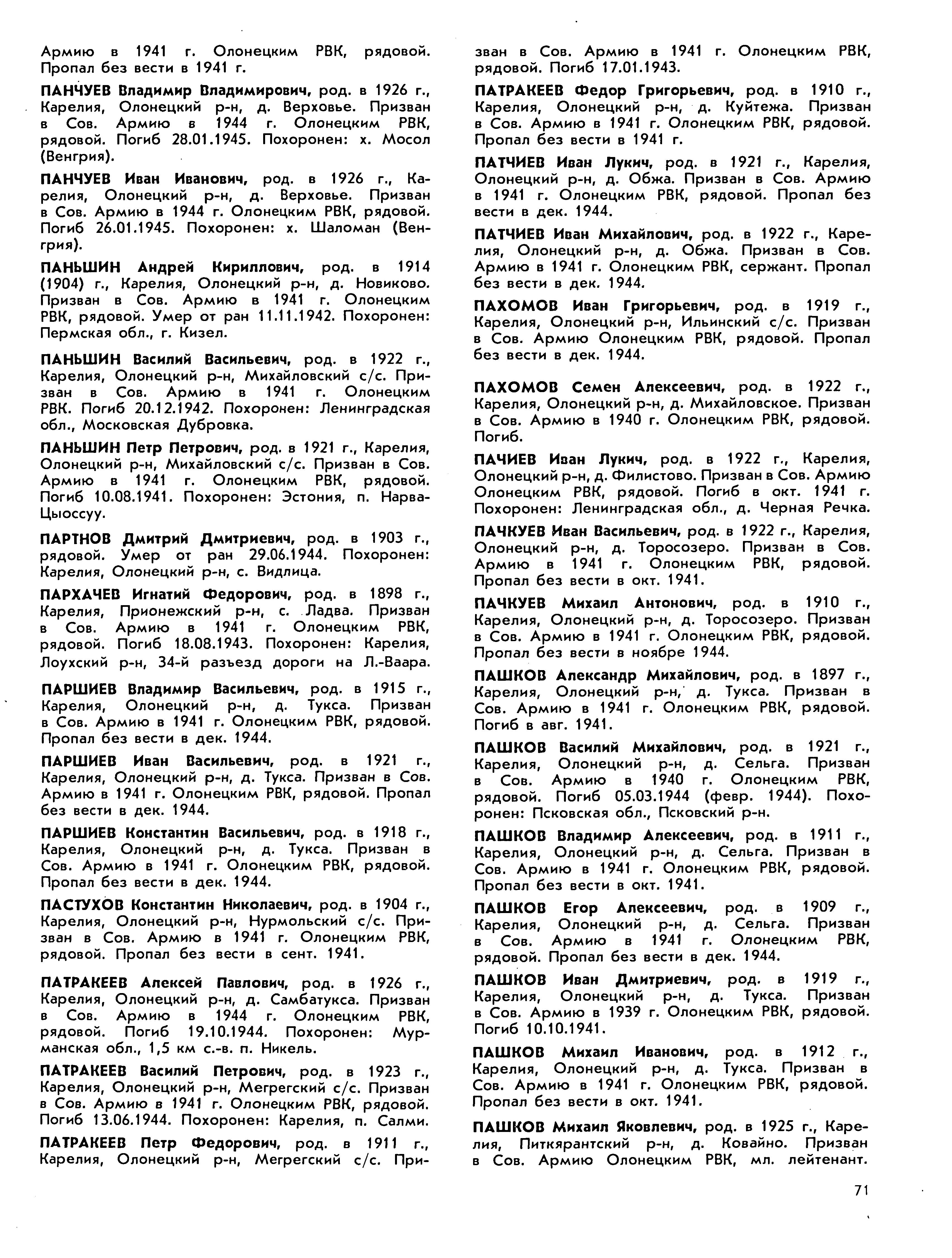 Книга памяти. Республика Карелия. Том 5. Страница 71 Перейти к списку