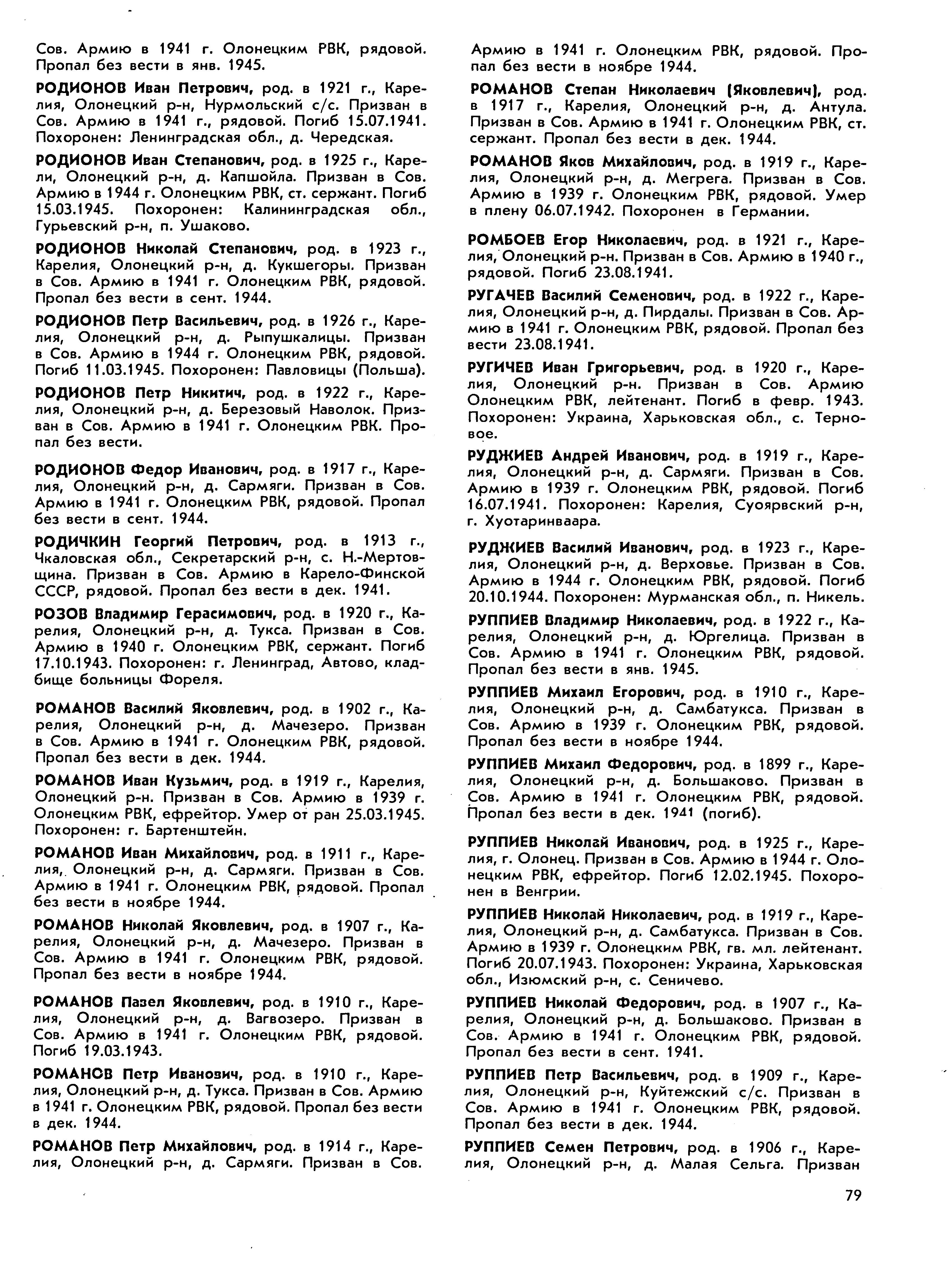 Книга памяти. Республика Карелия. Том 5. Страница 79 Перейти к списку