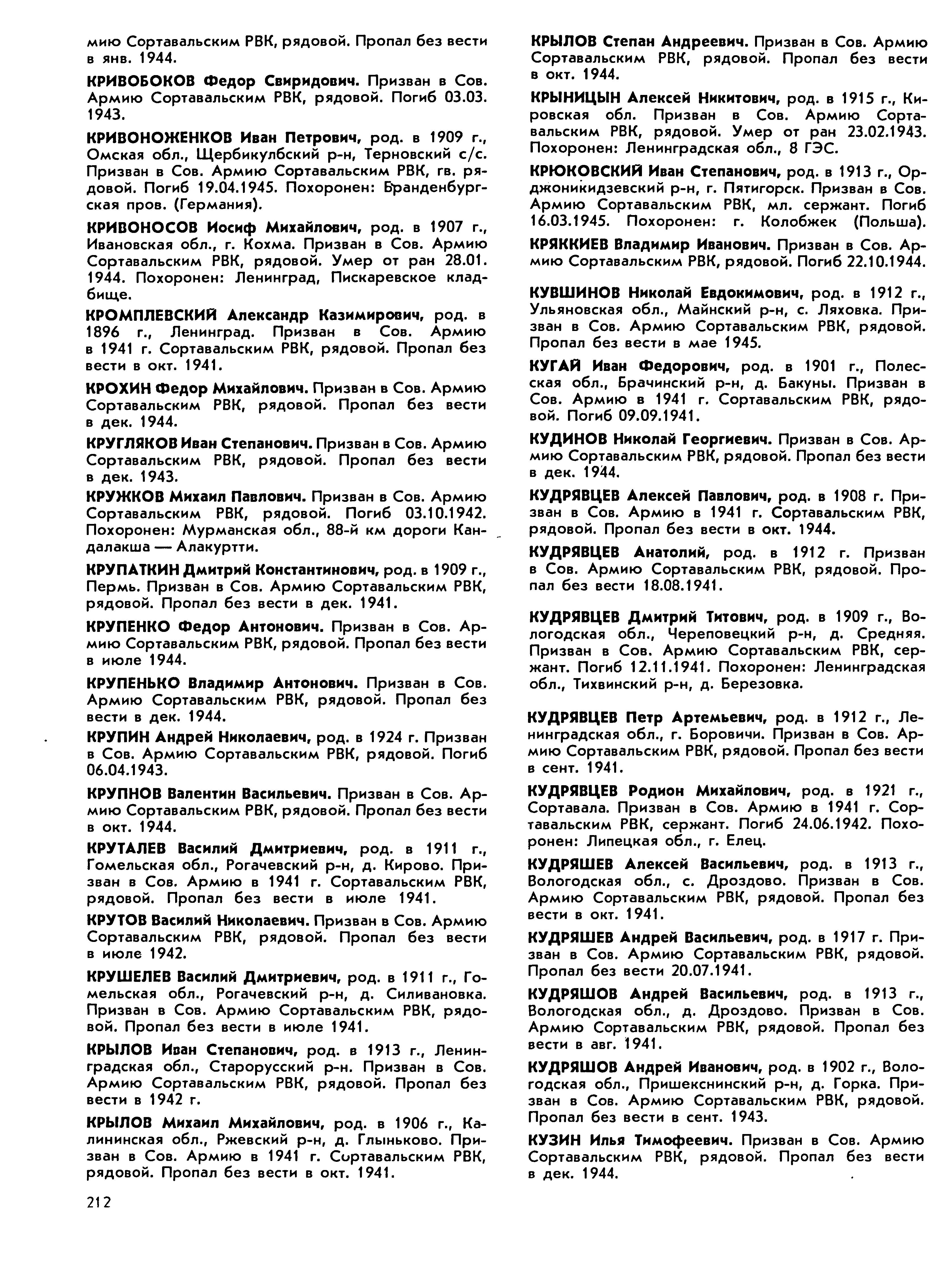 Книга памяти. Республика Карелия. Том 6. Страница 212 Перейти к списку