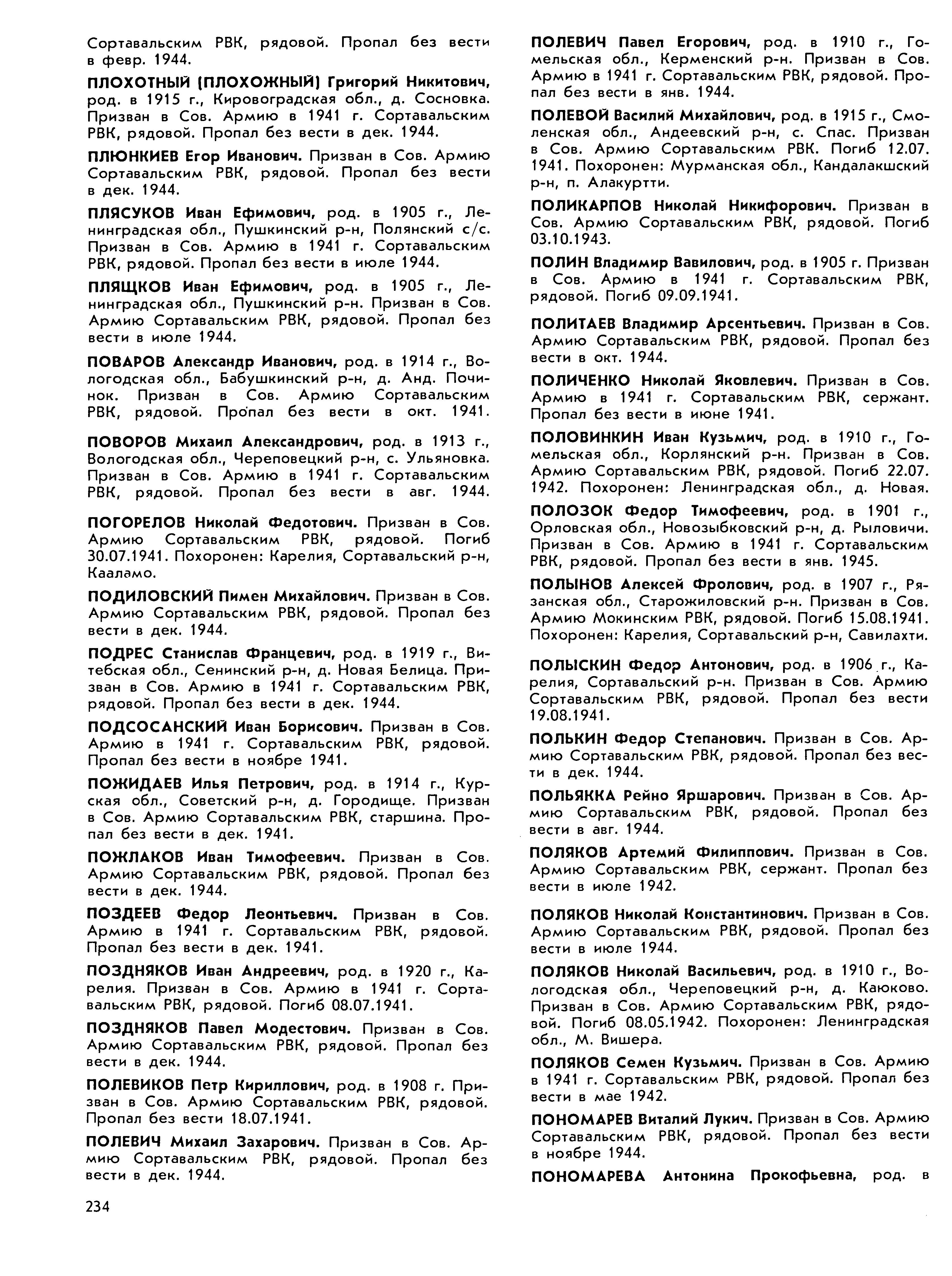 Книга памяти. Республика Карелия. Том 6. Страница 234 Перейти к списку