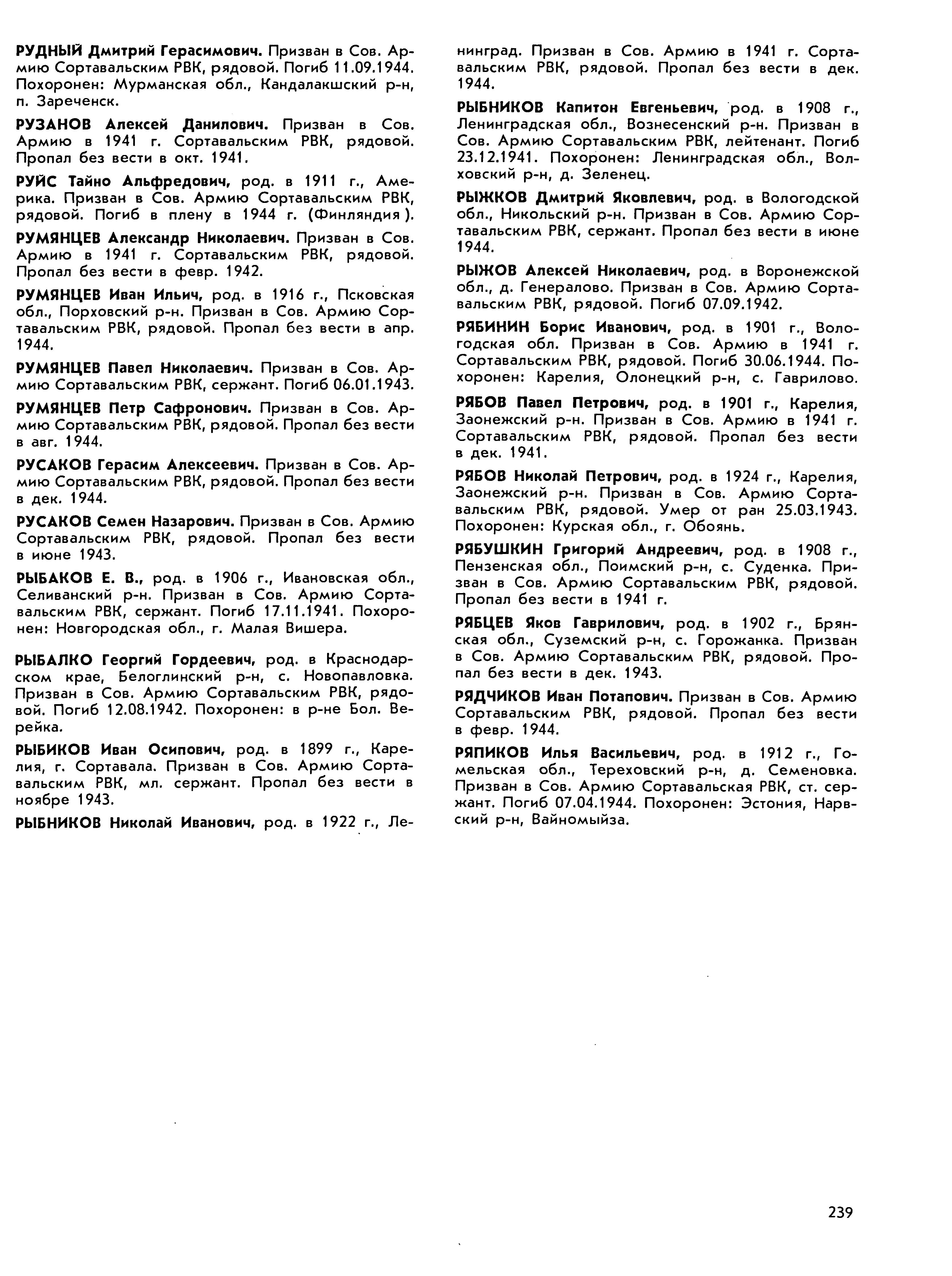 Книга памяти. Республика Карелия. Том 6. Страница 239 Перейти к списку