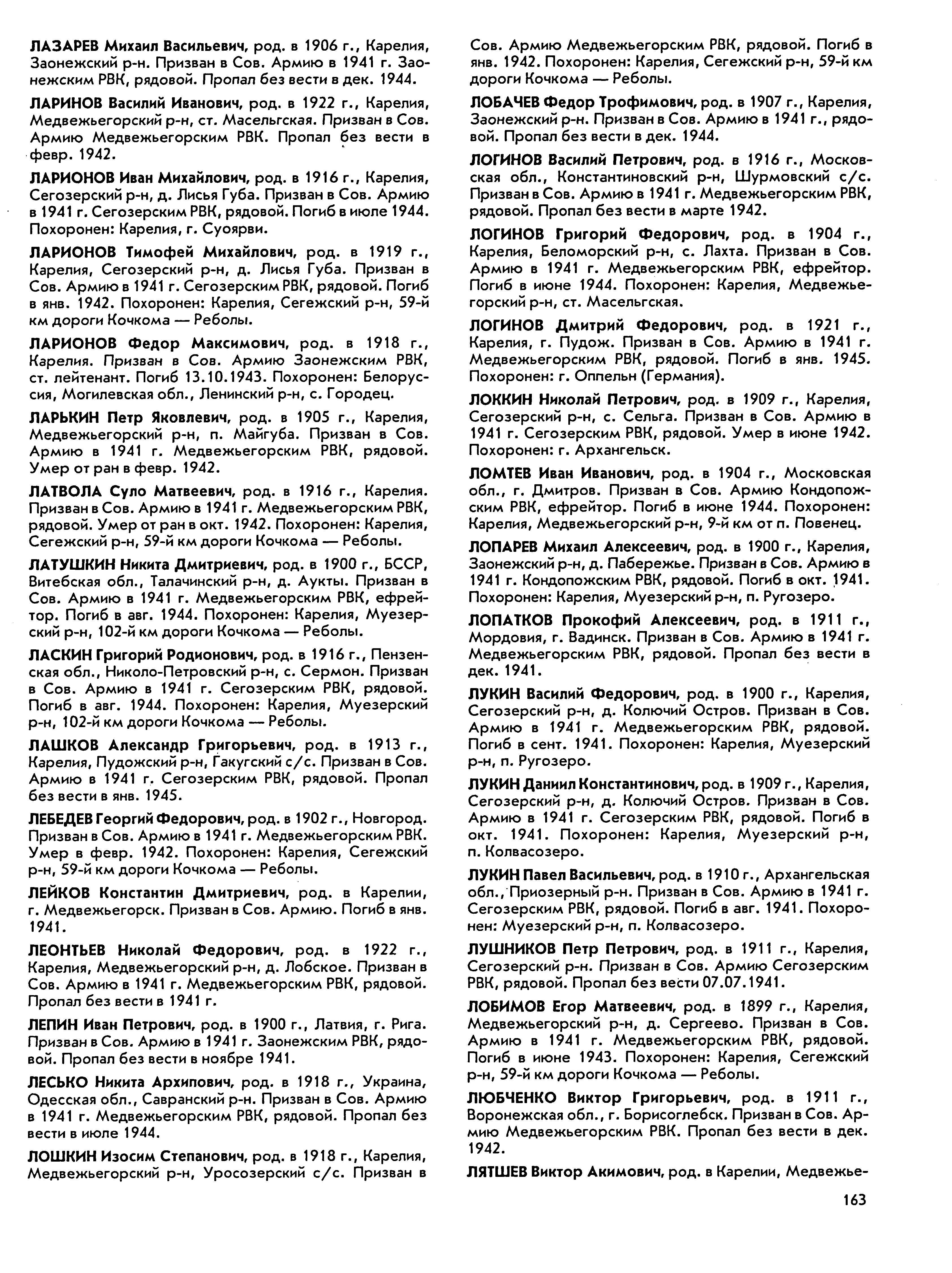 Книга памяти. Республика Карелия. Том 7. Страница 163 Перейти к списку