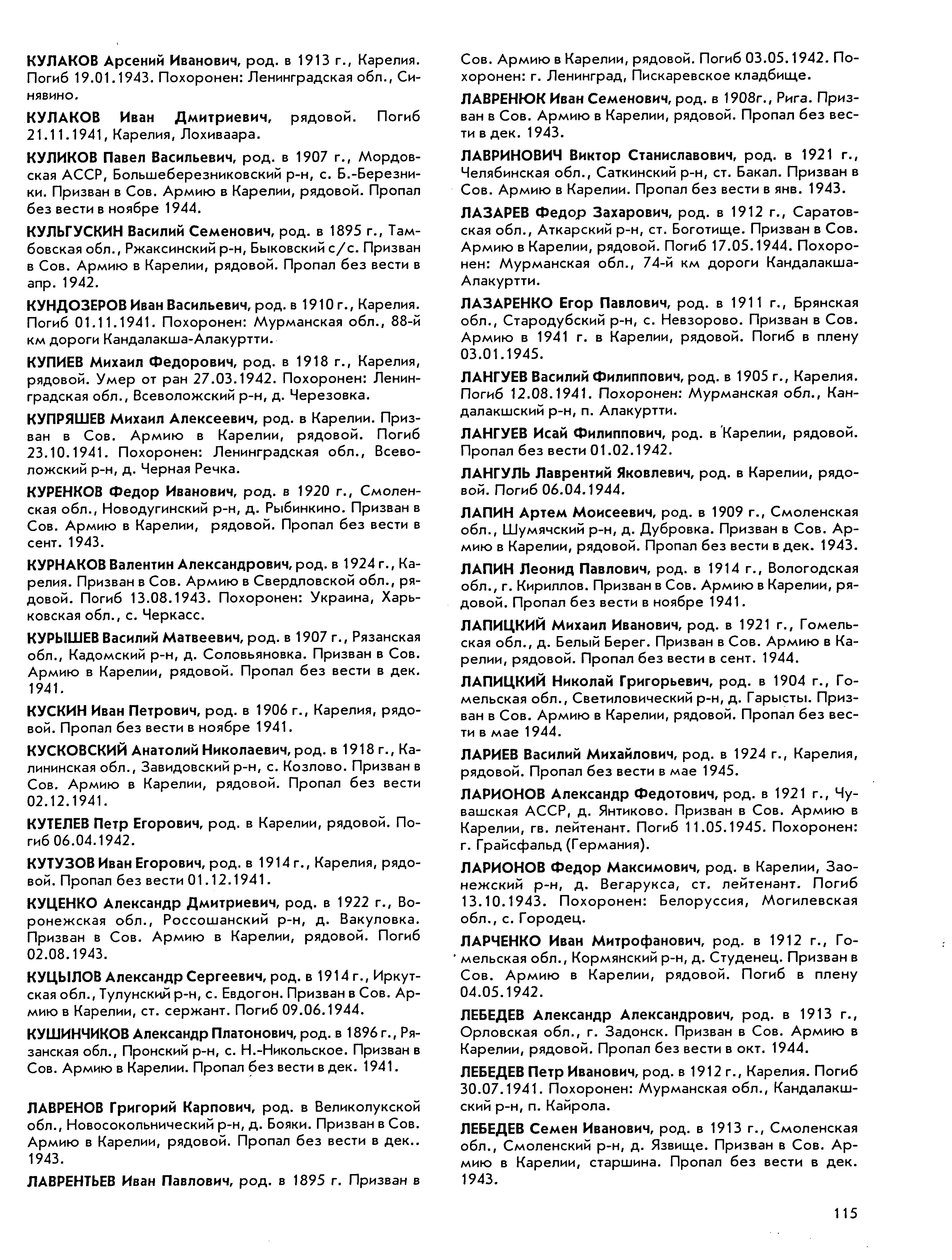 Книга памяти. Республика Карелия. Том 8. Страница 115 Перейти к списку