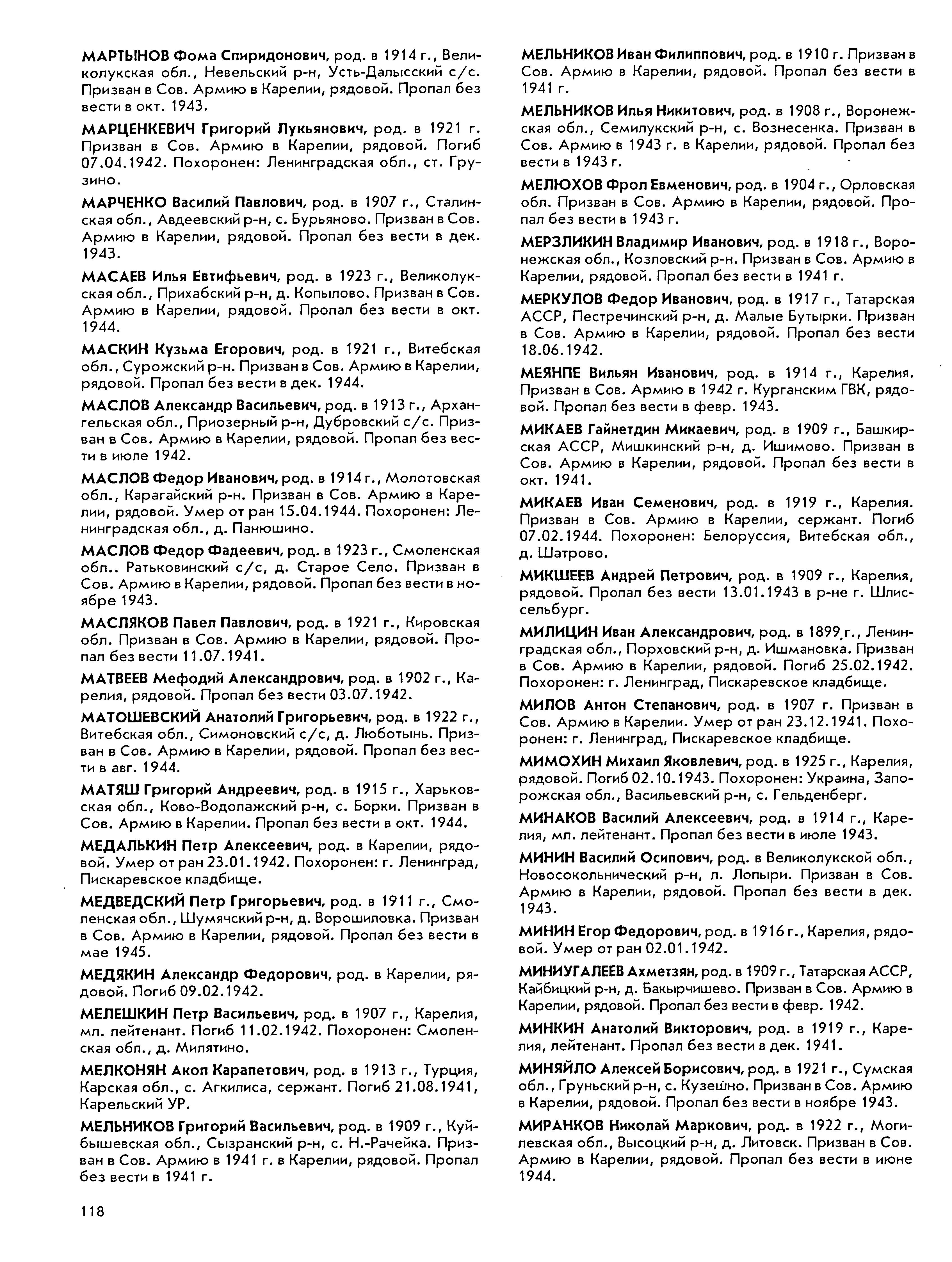 Книга памяти. Республика Карелия. Том 8. Страница 118 Перейти к списку